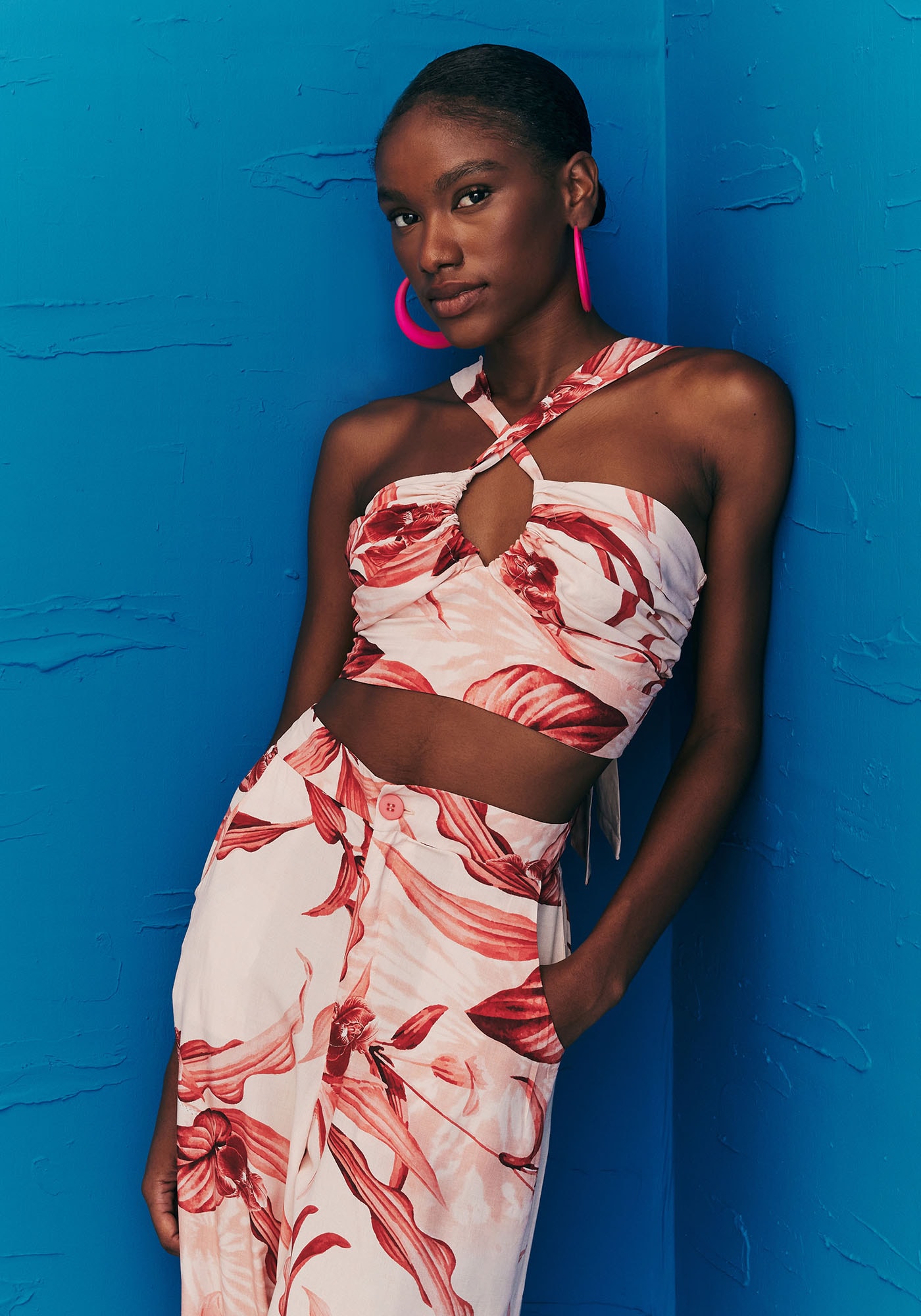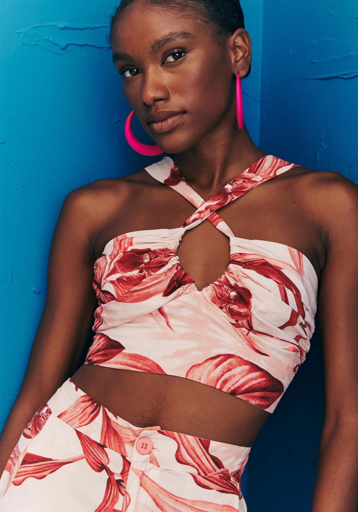 Encante-se com O Cropped Amarração Estampado Las Orquídeas,uma peça única que traz estilo e modernidade ao seu visual. Apresenta umcomprimento cropped e modelagem ajustada com lastex na parte das costas para proporcionarconforto. Seu decote é diferenciado apresentando recorte na região do busto e alçasem transpasse que possuem amarração nas costas. Tem composição de 100% viscose.