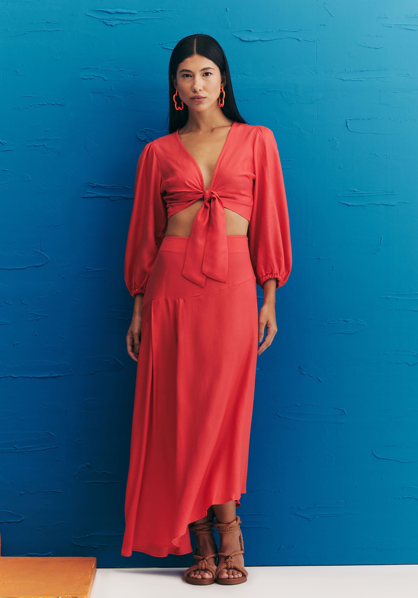 O cropped liso é apaixonante. Confeccionadoem tecido 100% viscose, a modelagem com manga bufante comprida possui decoteprofundo e amarração na parte da frente, valorizando a silhueta.