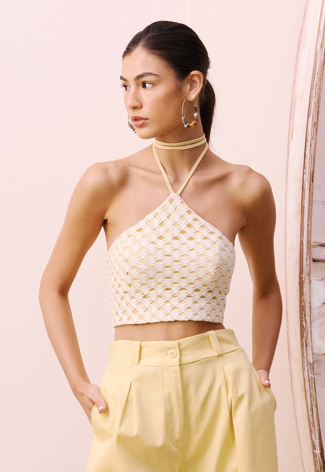Ideal para compor looks casuais com sofisticação, esse cropped transita bem entre o dia a dia e ocasiões mais descontraídas. O design rendado traz textura e delicadeza, com detalhes que enriquecem produções simples. Combine com alfaiataria leve, saias fluidas ou jeans de cintura alta, e finalize com acessórios artesanais ou brincos marcantes para um toque contemporâneo. Sinta a leveza e a elegância de vestir CaCay experimente e descubra novas formas de expressar seu estilo.
