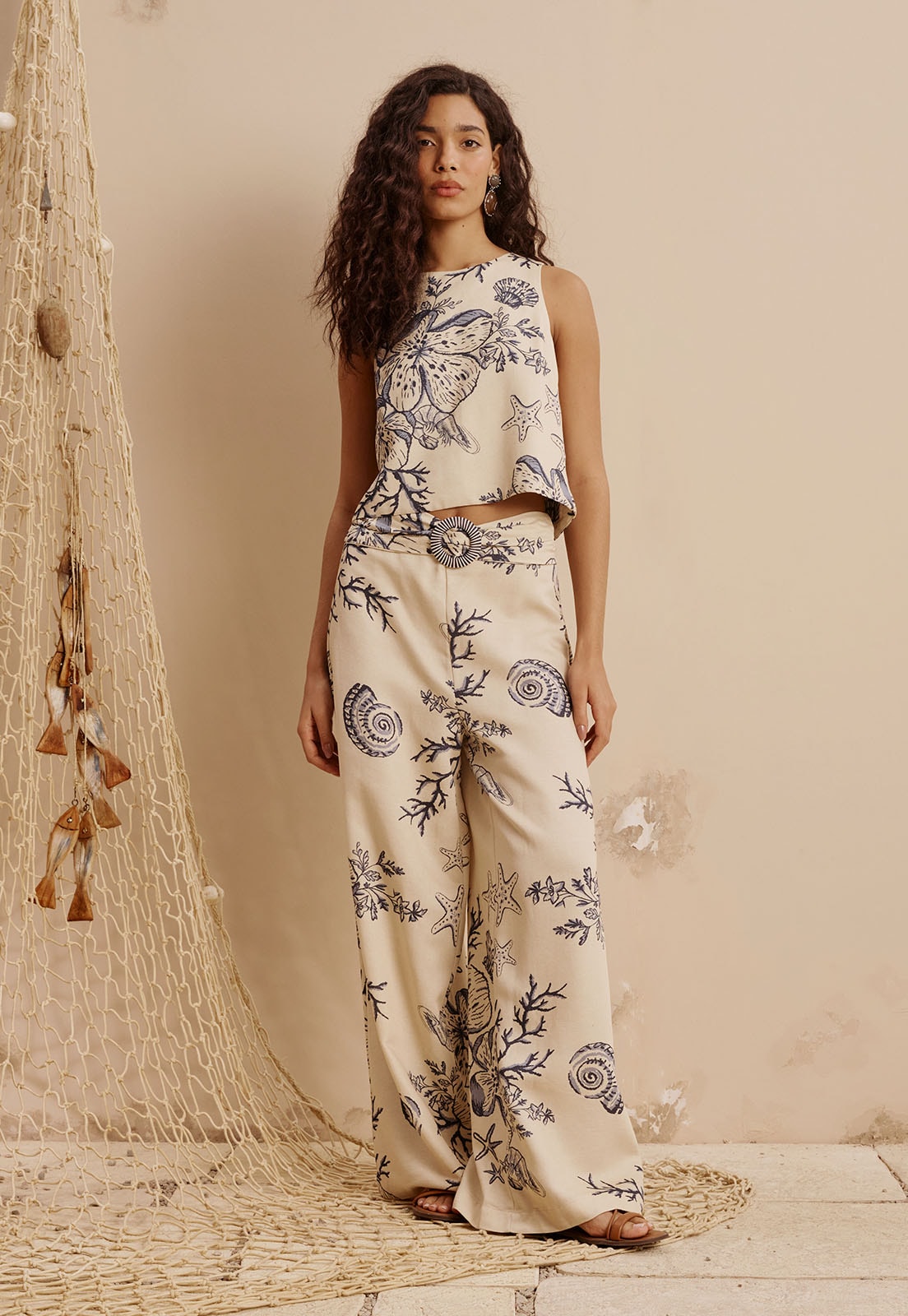 O Cropped Costas Transpassada Estampado Murere da CaCay é a escolha ideal para quem busca leveza com personalidade. Com design sem mangas e estampa inspirada em elementos marinhos como conchas, corais e estrelas do mar , essa peça une sofisticação e frescor em um corte fluido e confortável. O detalhe transpassado nas costas garante um toque surpreendente e moderno, valorizando a silhueta com elegância. A composição do tecido (50% algodão, 29% viscose, 15% modal e 6% linho) oferece caimento suave e respirabilidade, ideal para dias quentes ou ambientes descontraídos.