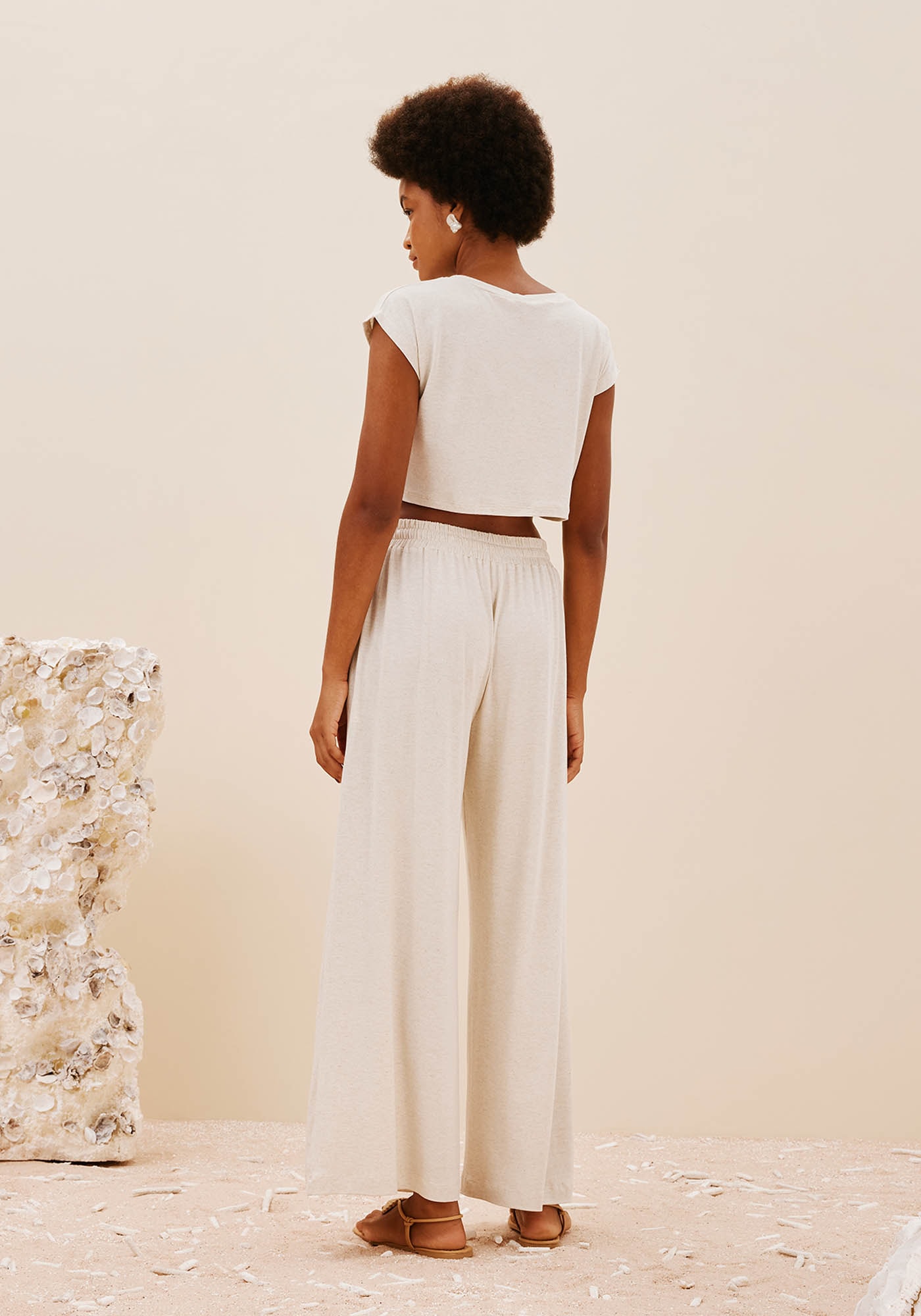Confeccionado em tecido 48% viscose43% modal 5% linho e 4% elastano, o cropped alongado é um modelo versátil e confortável. Em cor lisa, a peçabásica vai bem em diversos looks.