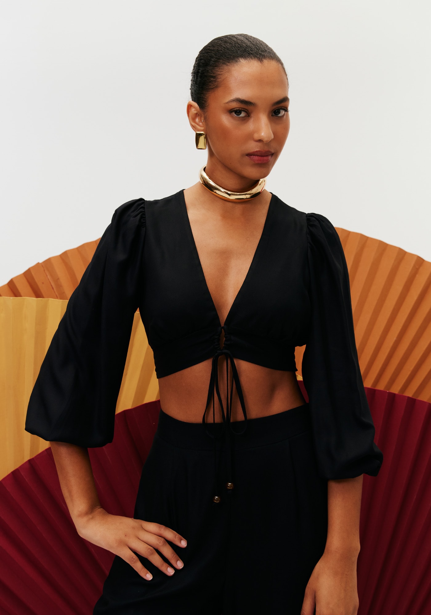 Confeccionado em tecido100% viscose, o cropped é uma peça versátil, que se encaixa em looks dediferentes estilos. O modelo mais ajustado ao busto possui decote profundo em Ve amarração na parte da frente.