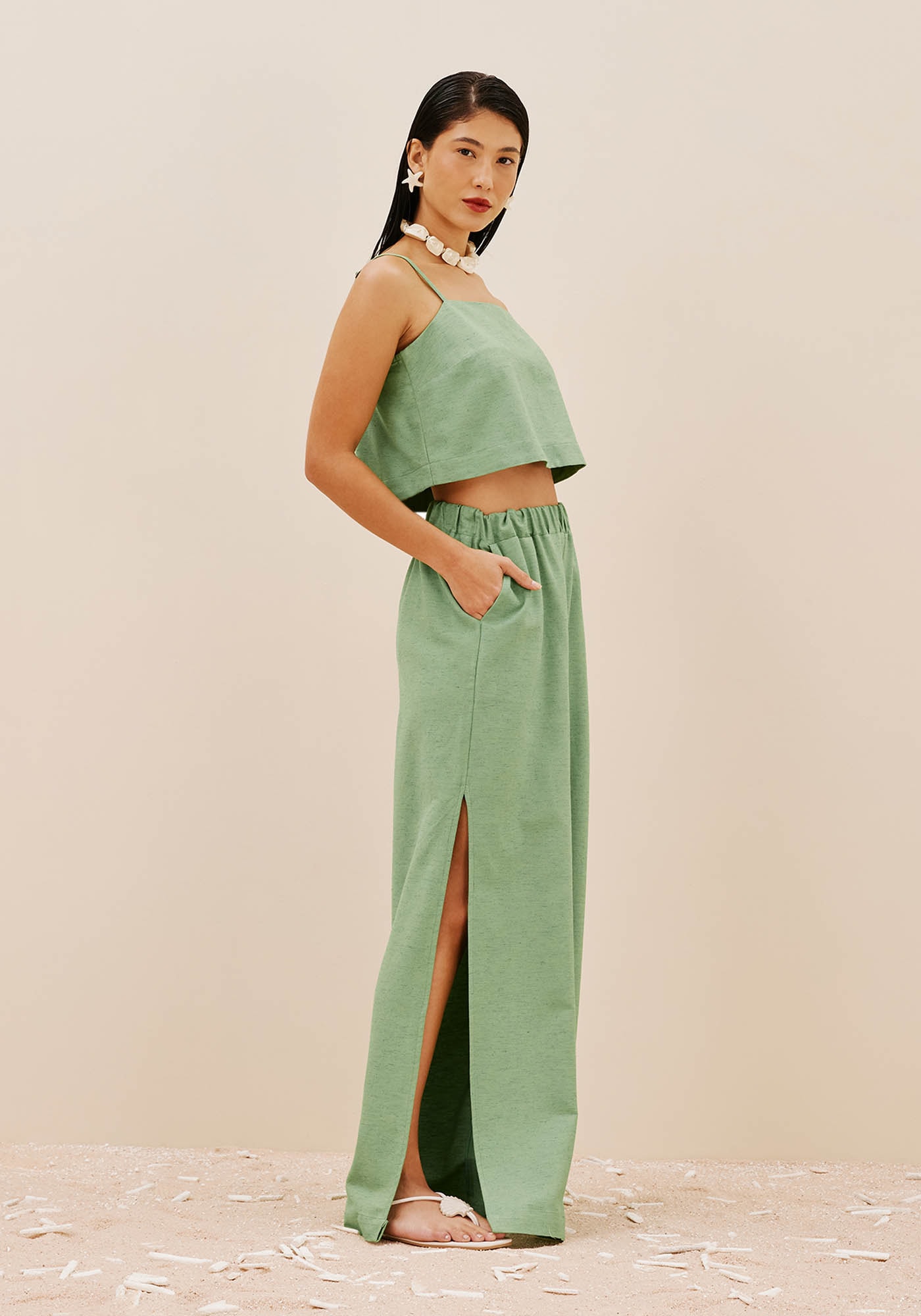 O cropped quadrado é um modelosuper versátil, que combina com diferentes looks. Confeccionado em tecido 42%algodão 38% viscose 14% modal e 6% linho, possui alça fina e modelagem mais soltinhacom abertura nas costas.