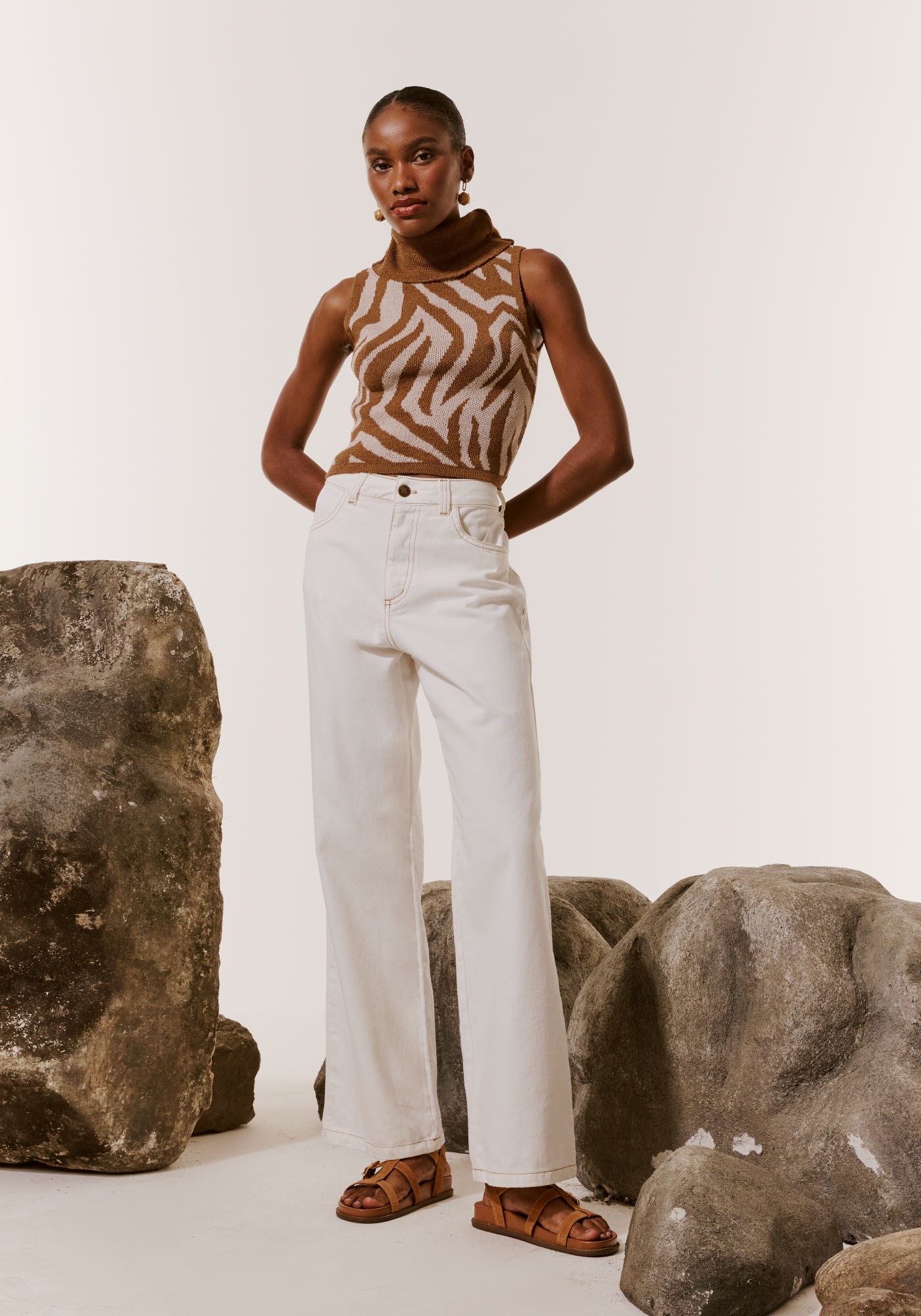 O cropped Jacquard é uma opção estilosa para os dias mais frios.O modelo em tricot possui gola altatrazendo o conforto necessário. O padrão de zebra é um dos clássicos do guarda-roupa.
