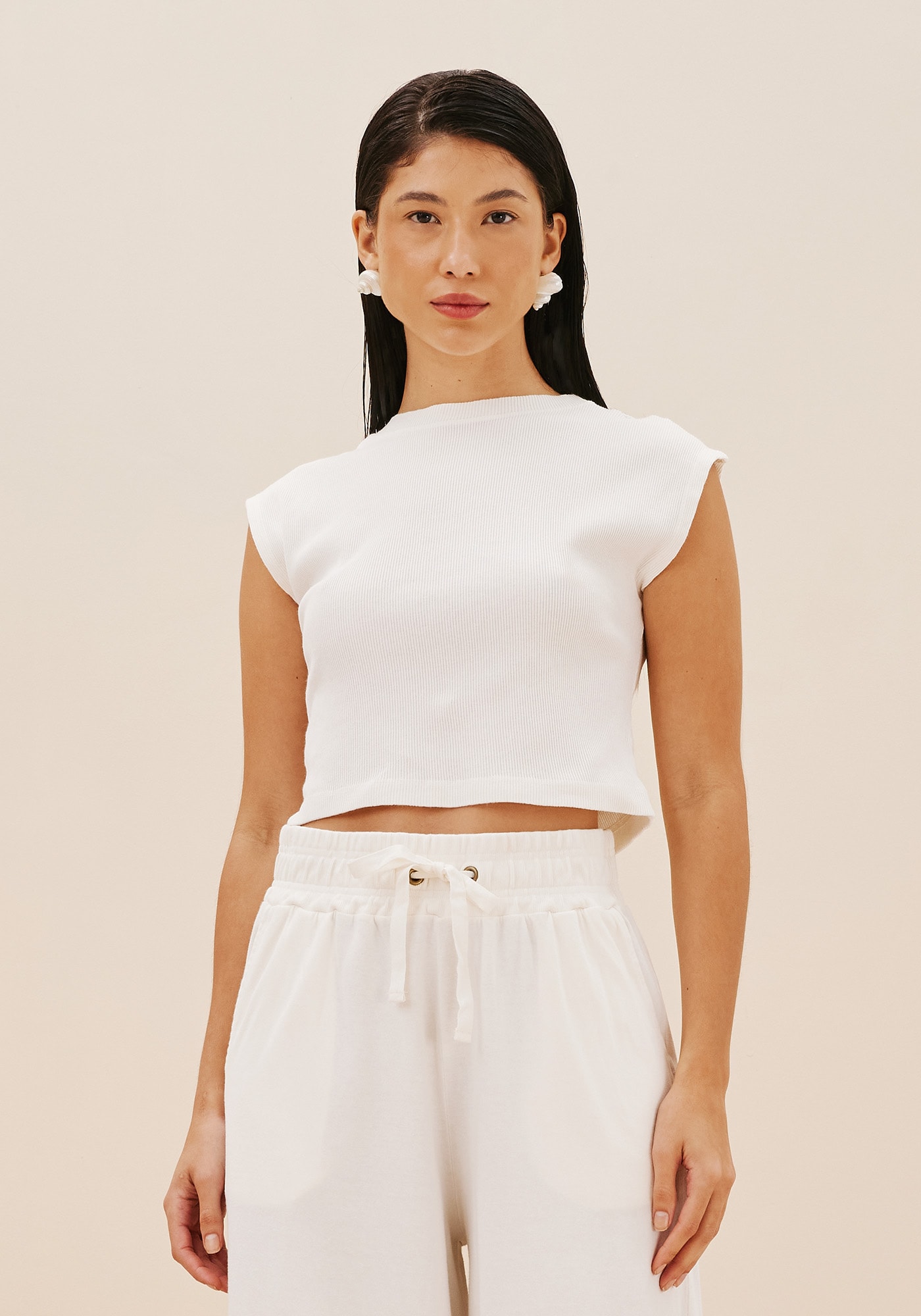 O cropped é versátil econfortável e possui um design diferenciado. A modelagem sem manga justa ao corpopode ser usada em diferentes combinações.