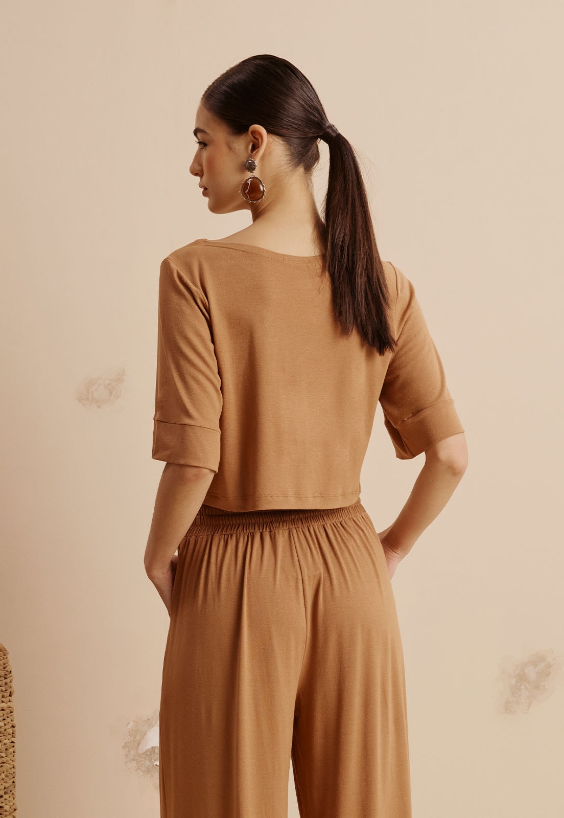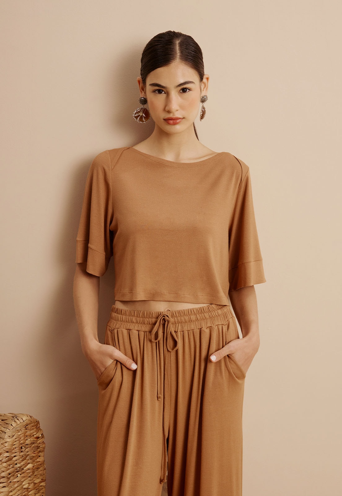 O Cropped Manga Ampla CaCay é a escolha ideal para quem busca elegância com leveza. Com modelagem reta e comprimento que valoriza a silhueta, ele traz mangas amplas até o cotovelo com punhos dobrados, criando um visual contemporâneo e sofisticado. Confeccionado em malha macia com 96% viscose e 4% elastano, oferece caimento fluido e toque suave, garantindo conforto absoluto em qualquer ocasião do casual ao urbano chic.