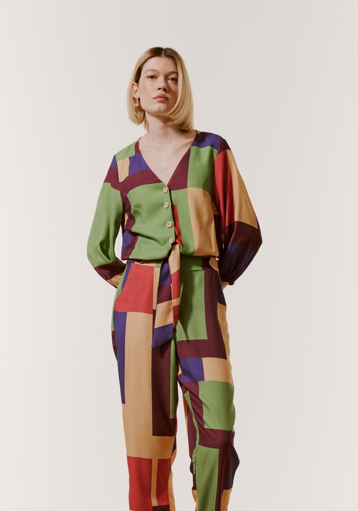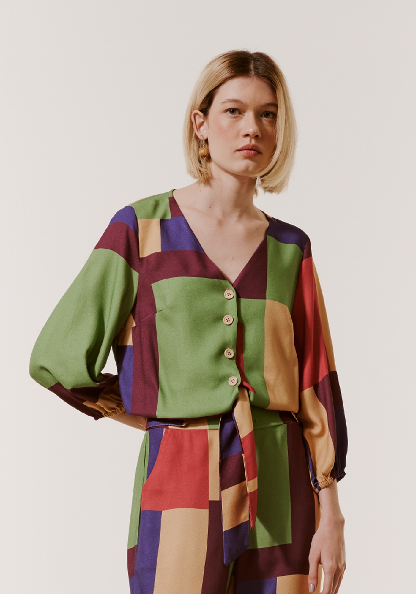 O cropped é um modelo que combina com looks mais elegantes. Confeccionadoem tecido 100% viscose com manga longa, o shape é soltinho com botões frontaise amarração na frente, dando todo o charme para a peça.
