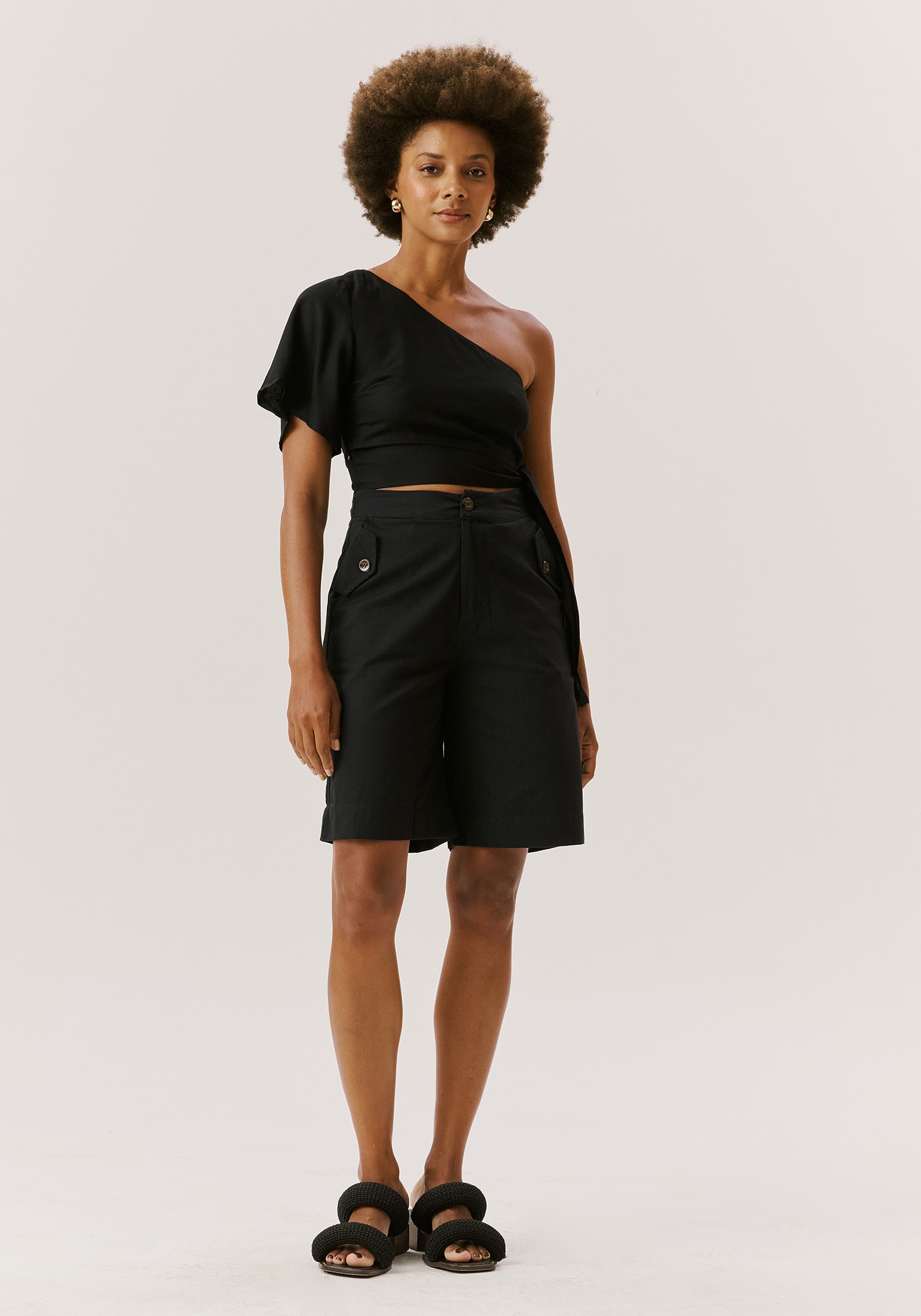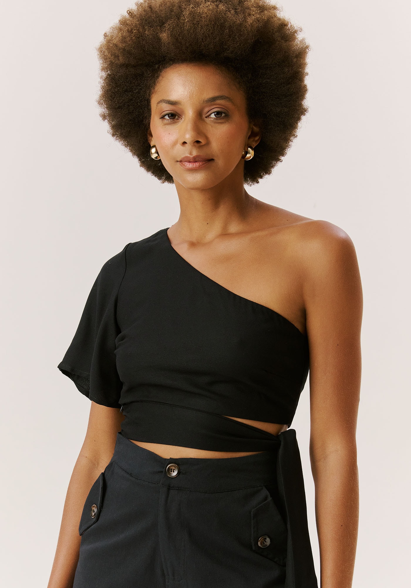 O Cropped Manga Só é versátil e estiloso, perfeito para compor looks para diversas ocasiões.Com recorte diferenciado na lateral e amarração na cintura, ele exala modernidade e feminilidade. Estiloso e cheio de atitude, é indispensável no seu guarda-roupas. É confeccionado em 100% viscose.