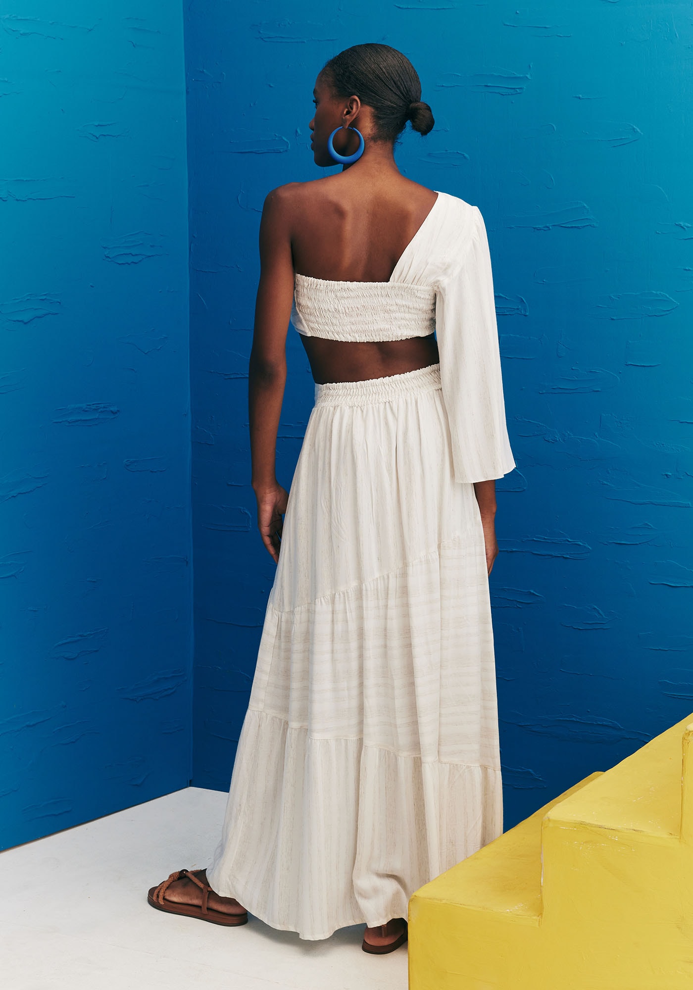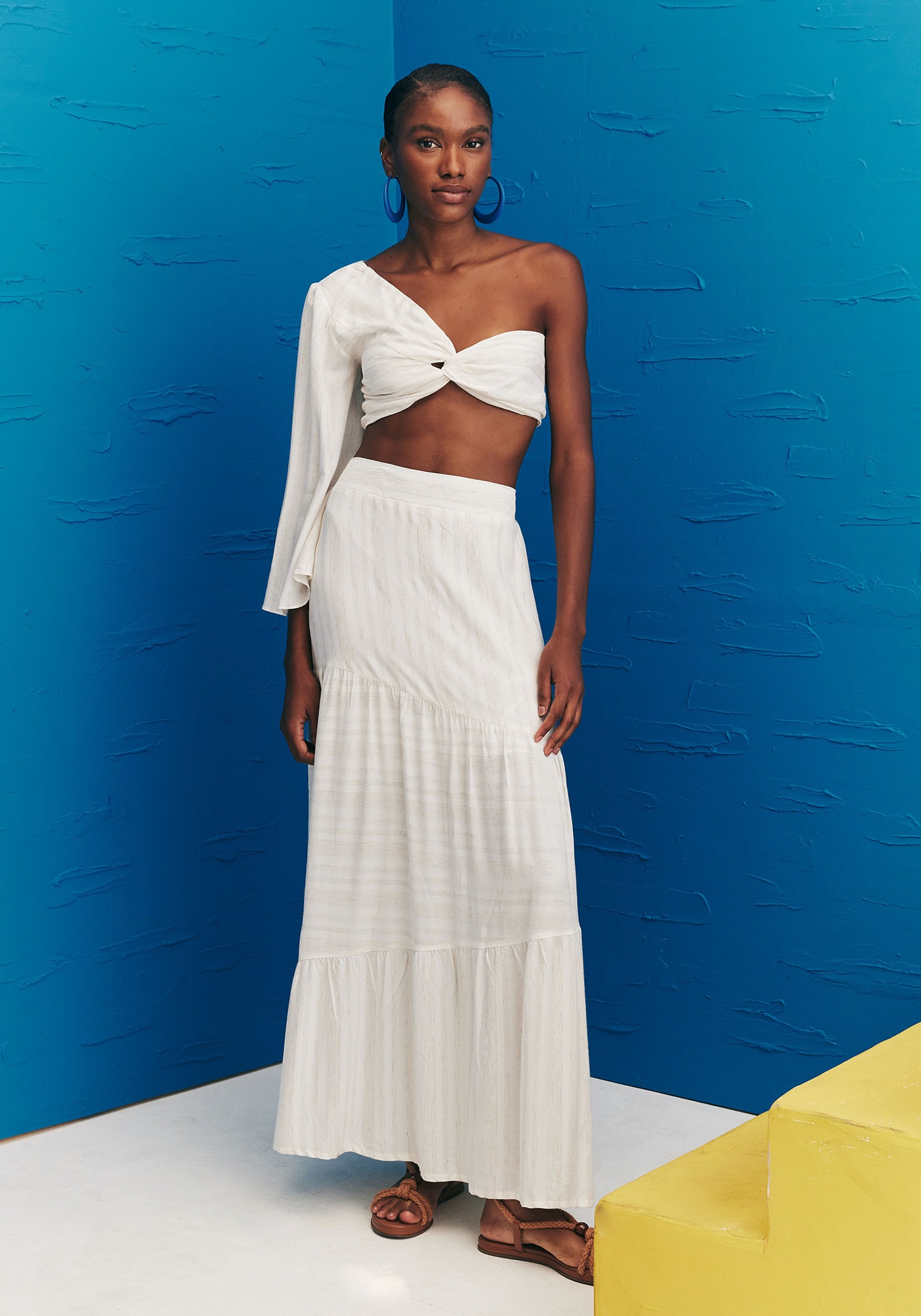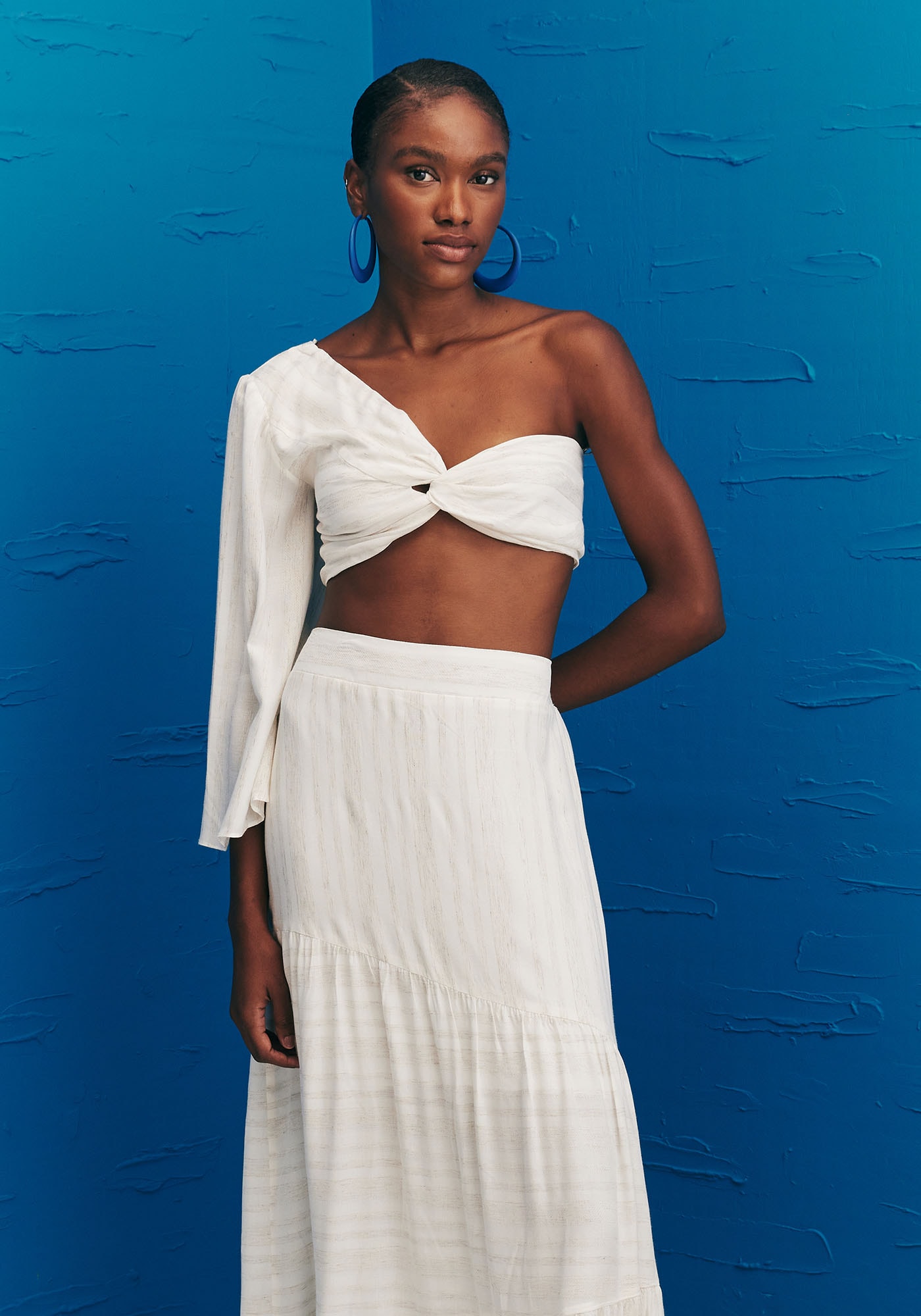 O Cropped Nó Busto é uma peça charmosa e versátil que se encaixa em diversas ocasiões. O detalhe do nó frontal adiciona um toque diferenciado além do design de uma manga só que torna o modelo ainda mais único. Esse cropped apresenta pala em lastex nas costas que proporciona conforto além de um ajuste ideal ao corpo. Seu tecido apresenta composição 97% Viscose 3% Linho.