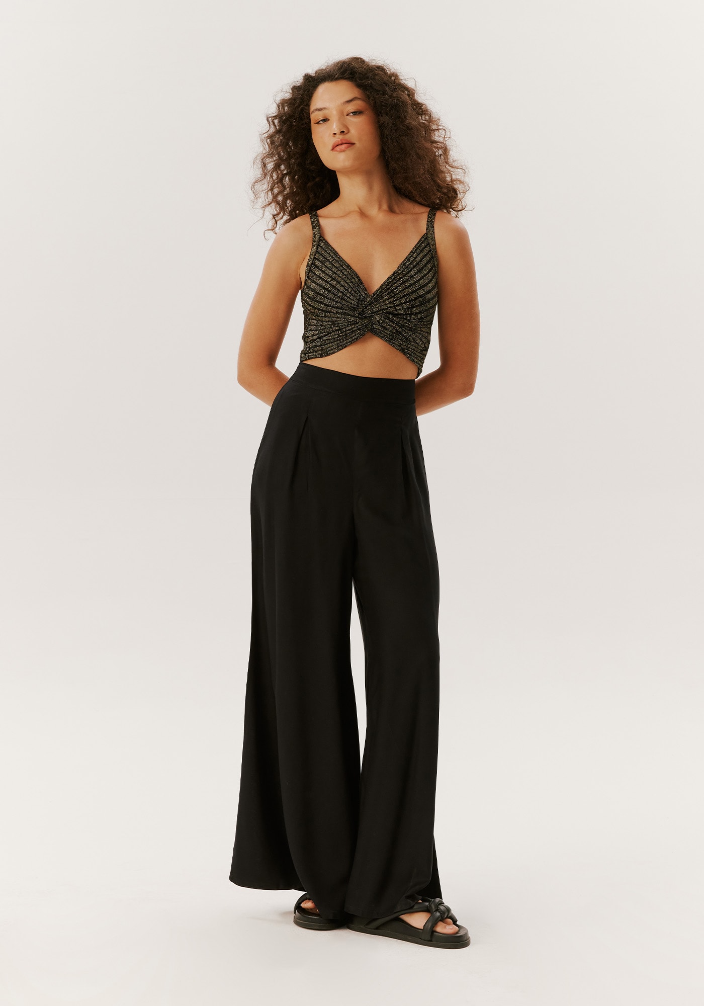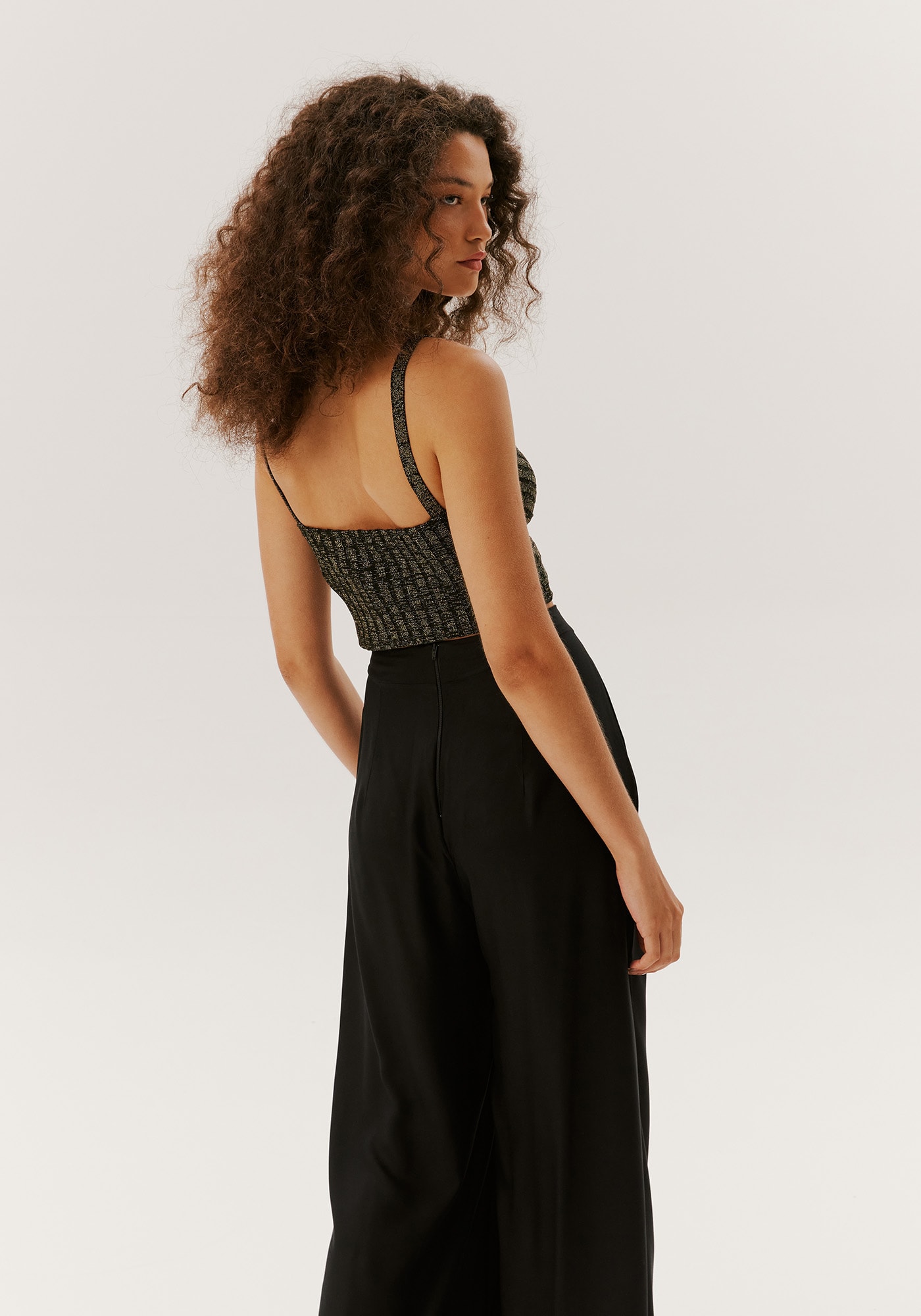 Este cropped feito em tricot com lurex apresentashape justo e decote V. O nó frontal traz um toque de delicadeza e modernidadeao mesmo tempo. Devido ao seu tecido com elastano a peça é maleável e oferecevestibilidade com conforto. Aproveite para combinar com outras peças da coleção.