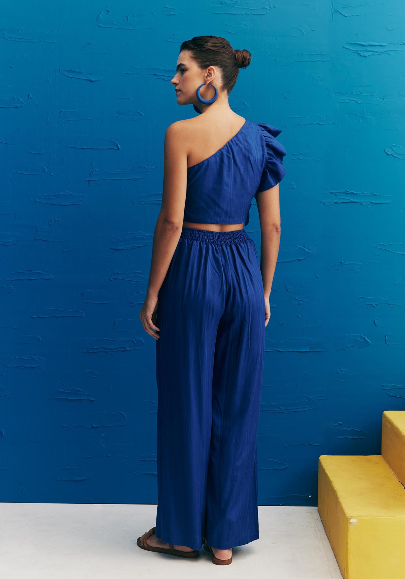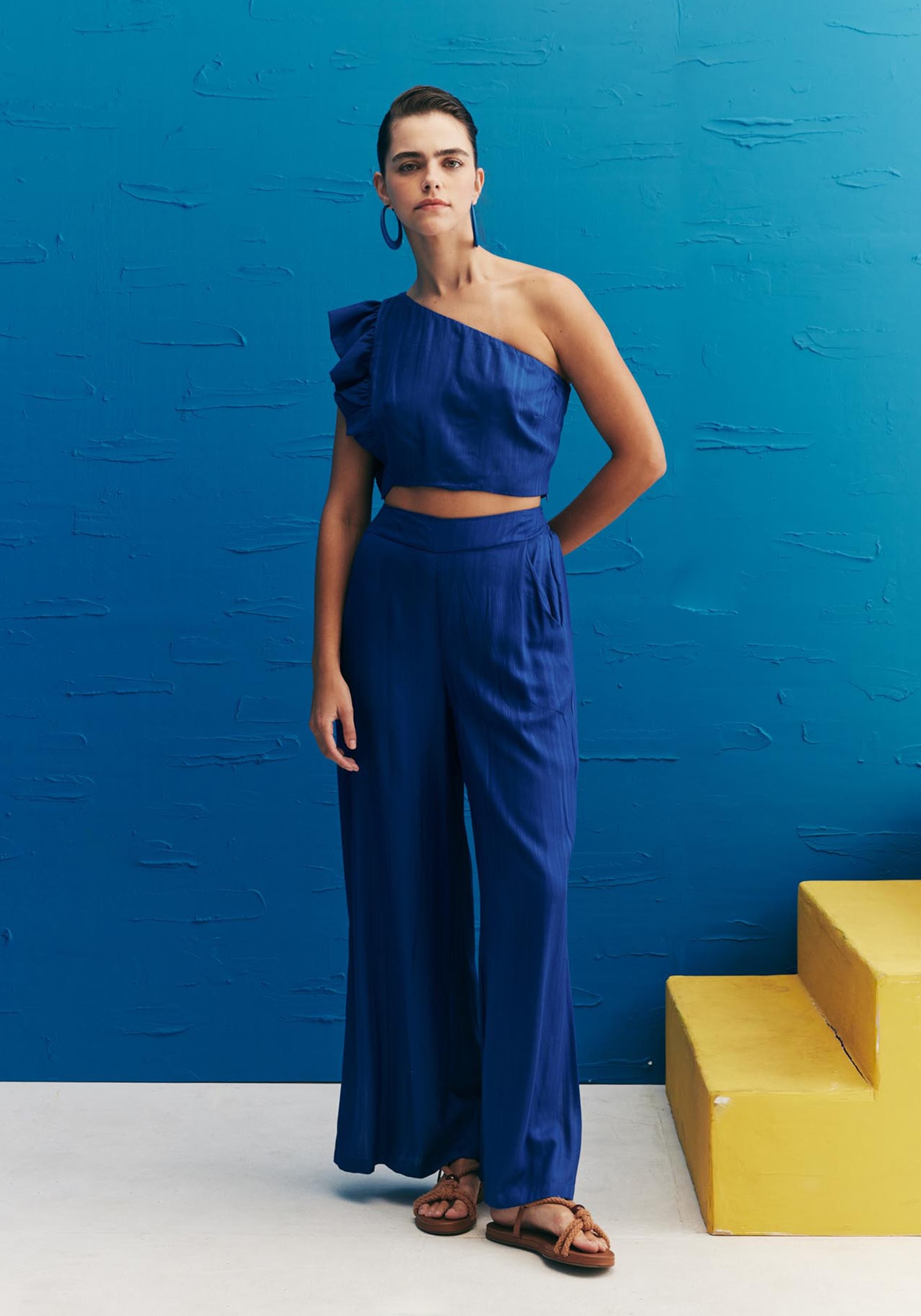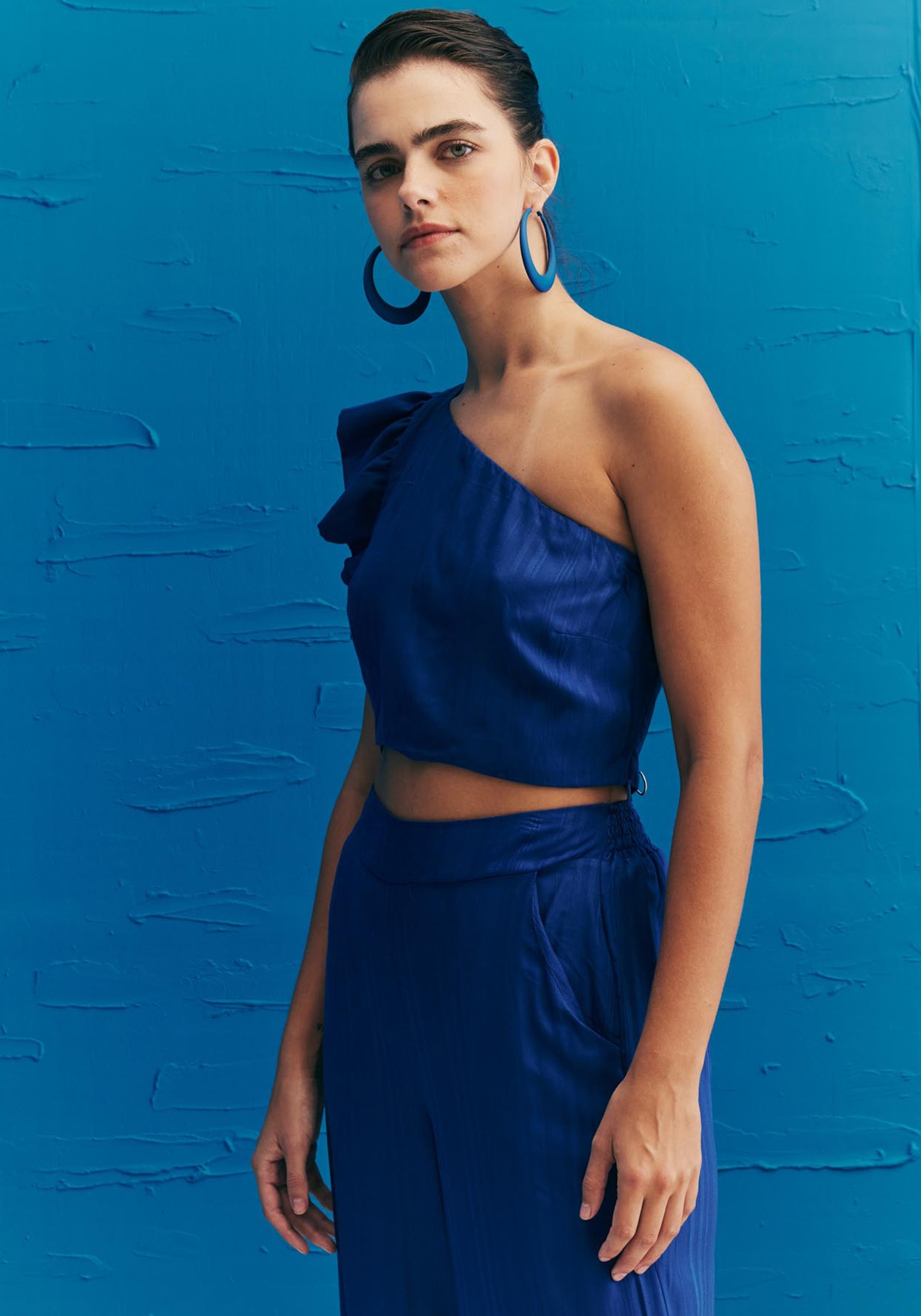 Confeccionado em tecido 100%viscose, o cropped com um ombro só é um modelo estiloso e sofisticado. Odetalhe principal está no babado do ombro, que deixa o modelo mais charmoso.Combina perfeitamente com diferente ocasiões e outras peças da coleção.