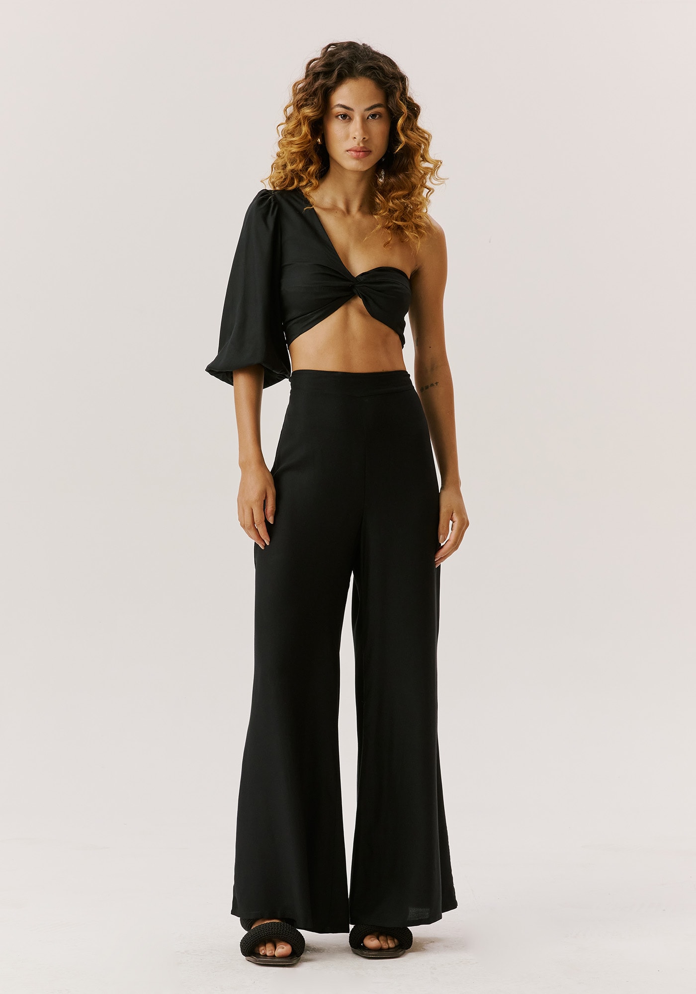 Confeccionado em tecido 100%viscose, o cropped é um modelo sexy e fashion. A peça de um ombro só é mais ajustadano corpo e possui o formato do busto. O lastex nas costas facilita avestibilidade.