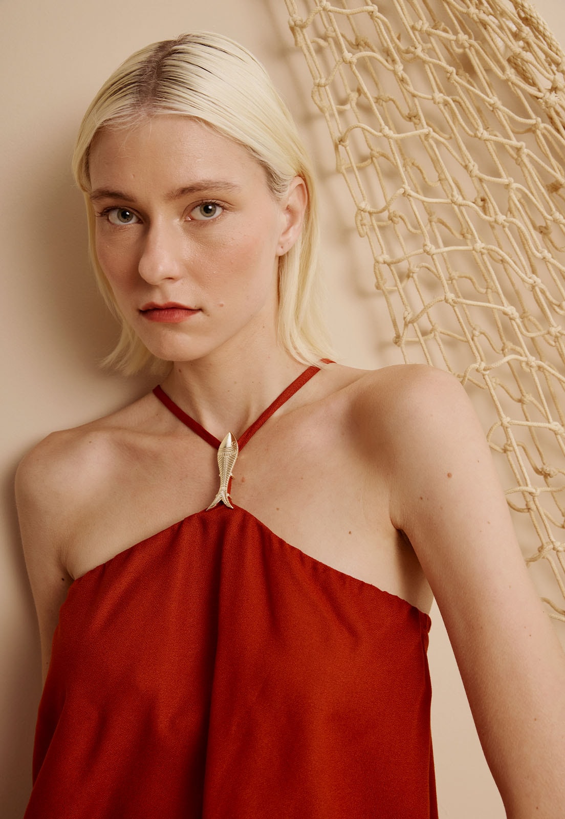 O Cropped Passador Peixe CaCay é a escolha ideal para quem busca leveza e sofisticação em uma peça atemporal. Com design fluido e corte reto, seu caimento solto valoriza diferentes silhuetas, oferecendo conforto sem abrir mão do estilo. O destaque fica por conta do passador em formato de peixe no decote, que adiciona um toque artesanal e único à peça. As alças finas e ajustáveis cruzam nas costas, criando um visual delicado e versátil para diversas ocasiões do dia a dia ao encontro especial.