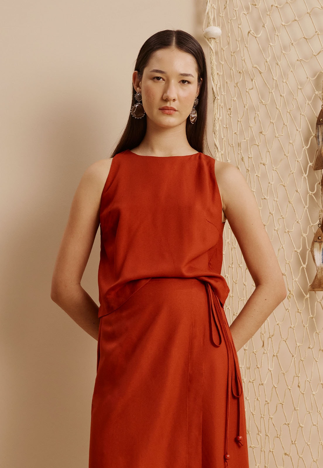 O Cropped Quadrinha Básica da CaCay é a escolha ideal para quem busca leveza e sofisticação em uma peça atemporal. Com corte reto e acabamento minimalista, o modelo sem mangas valoriza o colo e garante liberdade de movimento. O detalhe de amarração lateral adiciona charme ao visual, enquanto a abertura em forma de gota nas costas, fechada por botão discreto, traz um toque delicado e funcional. Confeccionado em 100% viscose, o tecido oferece caimento fluido e confortável, perfeito para dias quentes ou composições em camadas.