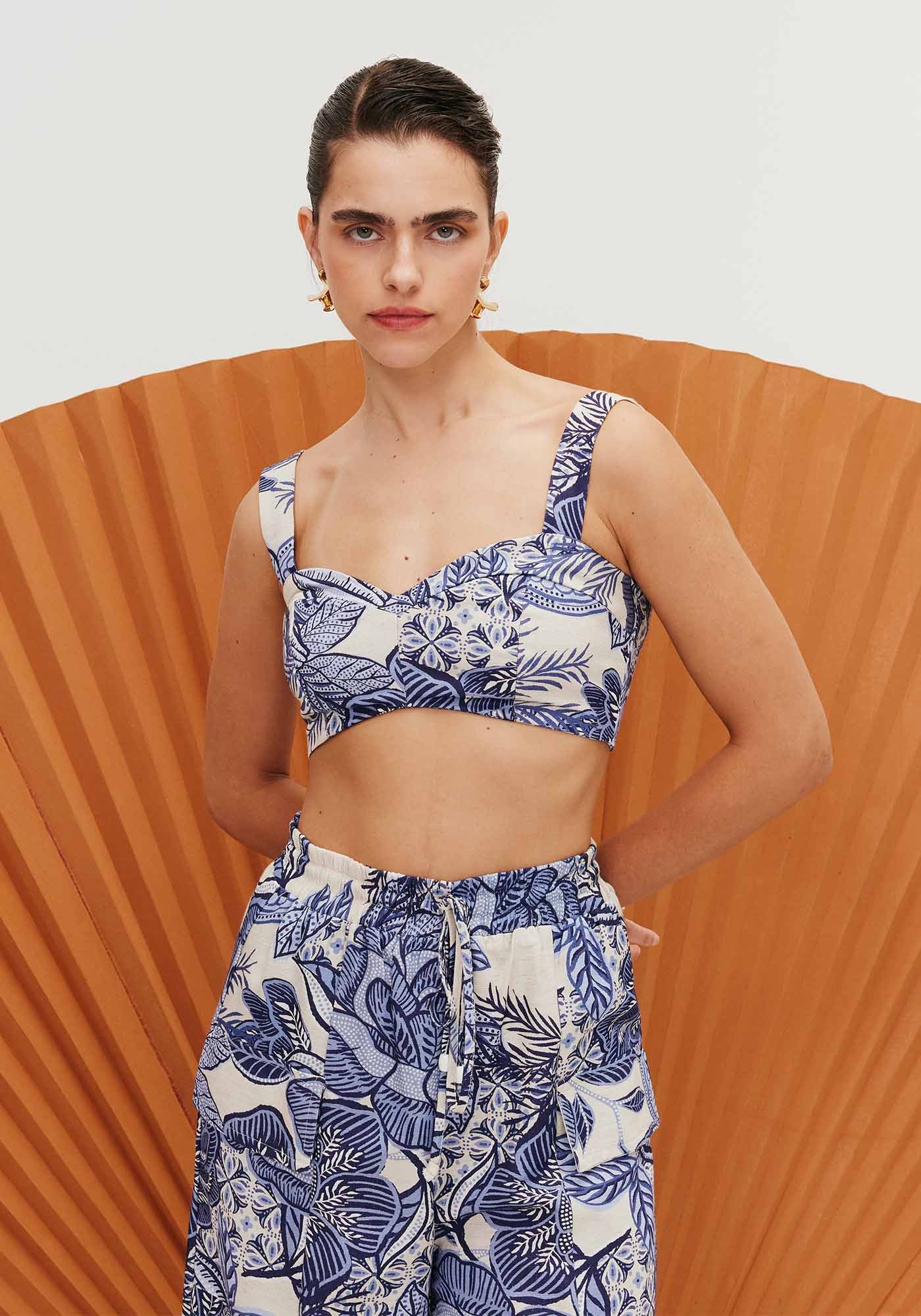 Moderno e estiloso, o cropped é confeccionado com alças médias e possui uma modelagem justa ao corpo, com um recorte diferenciado, que valoriza o busto. O lastex nas costas facilita a vestibilidade. É confeccionado com tecido mista, 50% algodão 29% viscose 15% modal 6% linho.