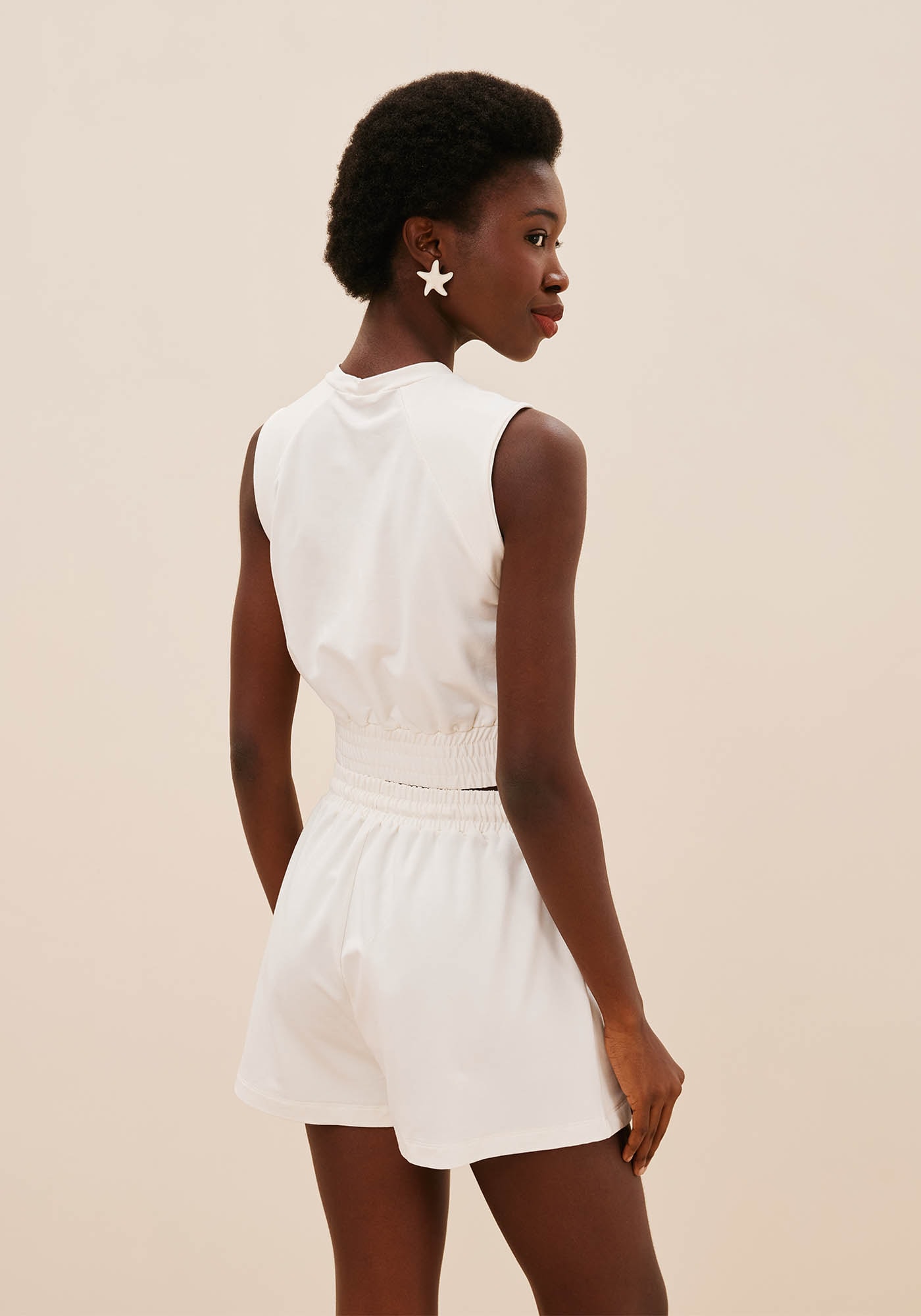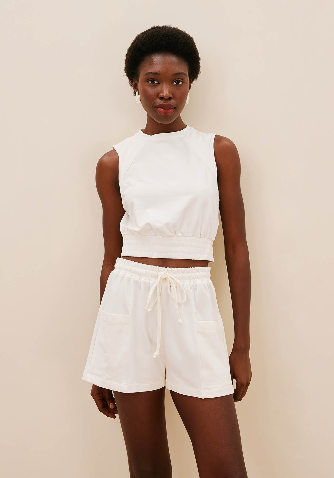 O croppped regata é a escolha perfeita para quem deseja montar composições modernas e que proporcionam conforto. Confeccionado em tecido de composição 94% Viscose e 6% Elastano, ele oferece um caimento ideal. O seu design apresenta pala com elástico na cintura e comprimento cropped que trazem um ar estiloso para a peça. Com sua modelagem básica porém versátil, é uma peça indispensável para o dia a dia.