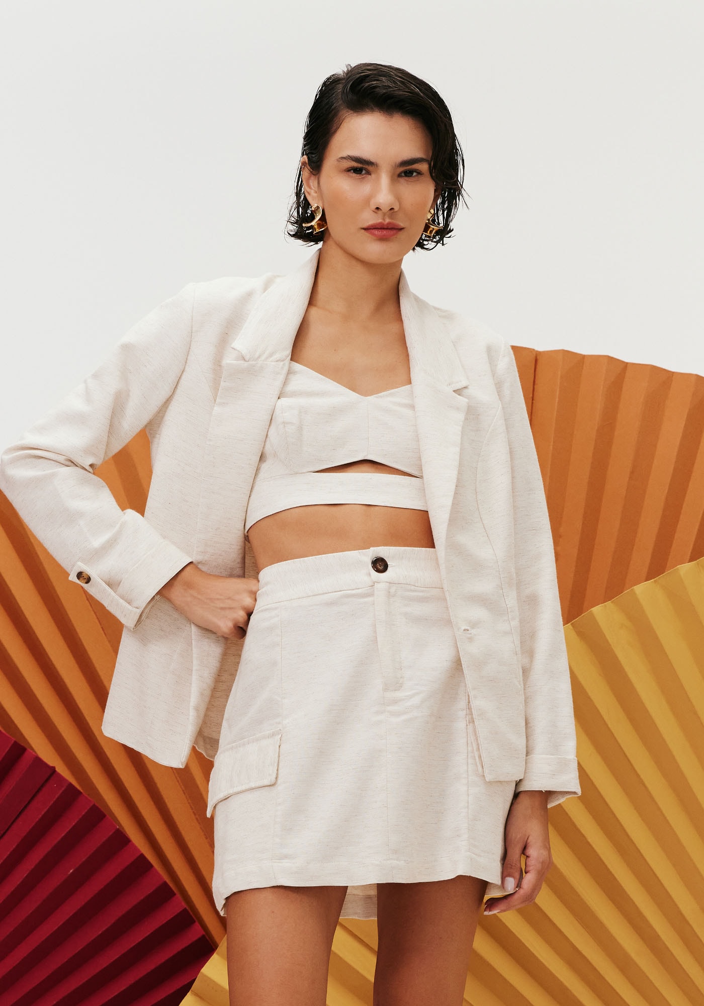O cropped tecido é umcomplemento estiloso e moderno para um look. Confeccionado em tecido 42%algodão 38% viscose 14% modal e 6% linho, o modelo possui um recorte abaixo dobusto, alças médias e lastex nas costas facilitando a vestimenta e adaptabilidadeao corpo.