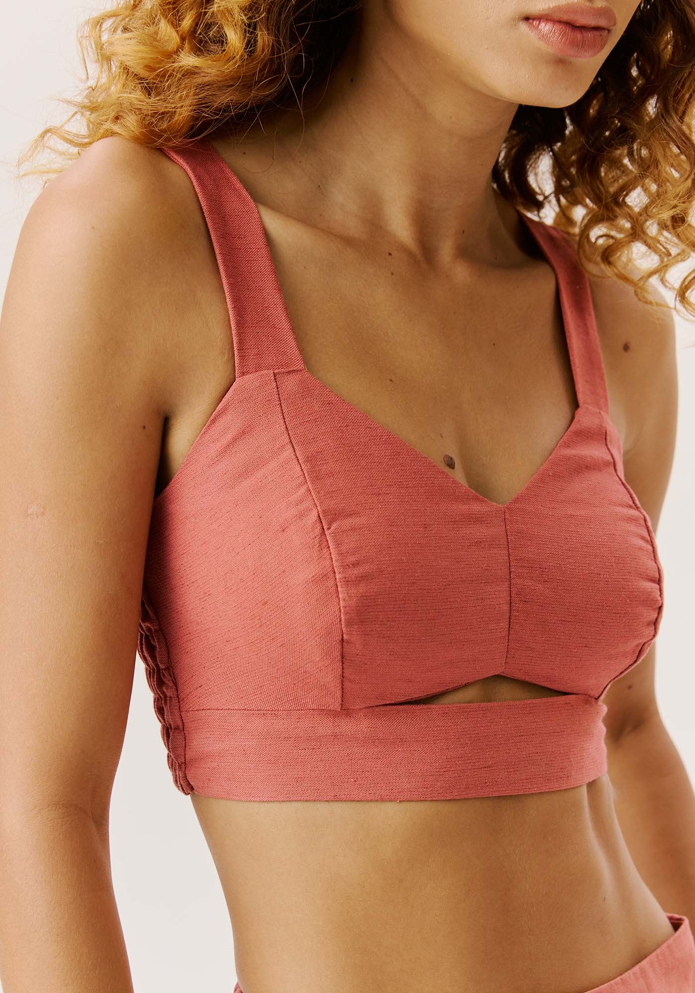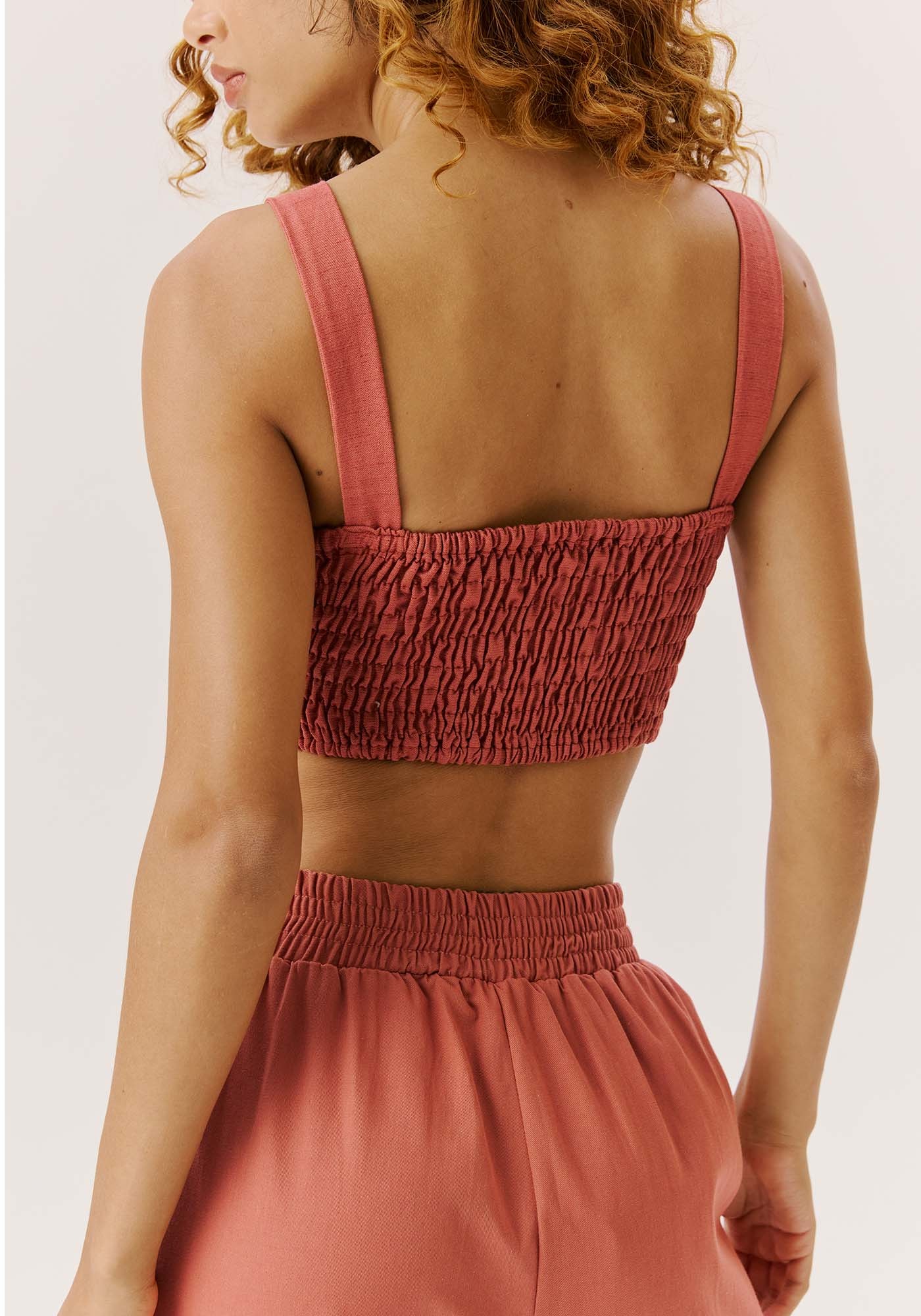 Confeccionado com alça larga e modelagemjusta ao corpo, valorizando o busto, o cropped possui um recorte charmosoabaixo do busto e lastex nas costas para melhorar a vestibilidade.