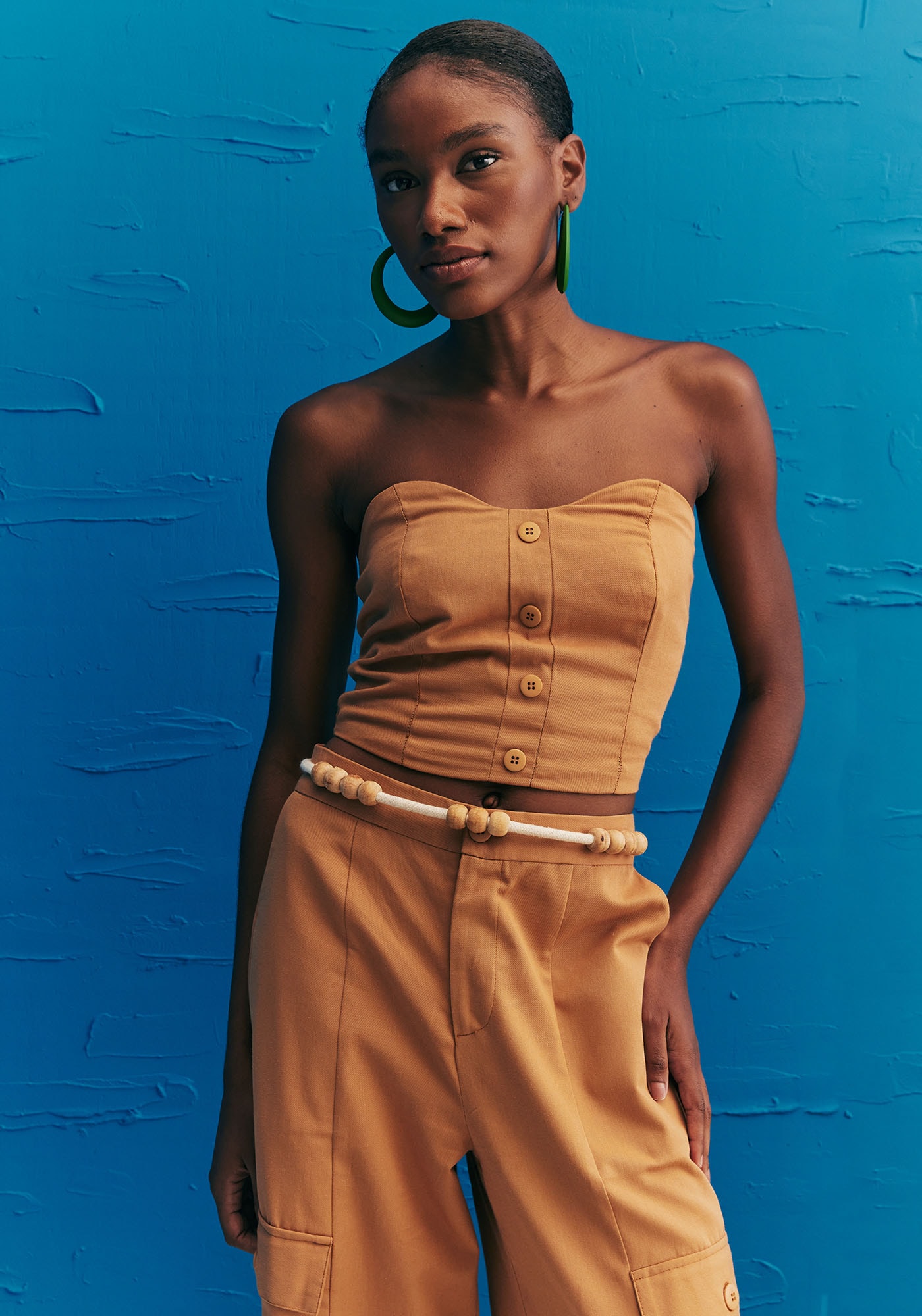 Confeccionado em tecido 100% algodão, o cropped tomara que caia é ummodelo estiloso e versátil. Com modelagem justa, estilo corselet, e lastex nascostas, o cropped valoriza as curvas do corpo, podendo ser usado em diferenteslooks e combinações.