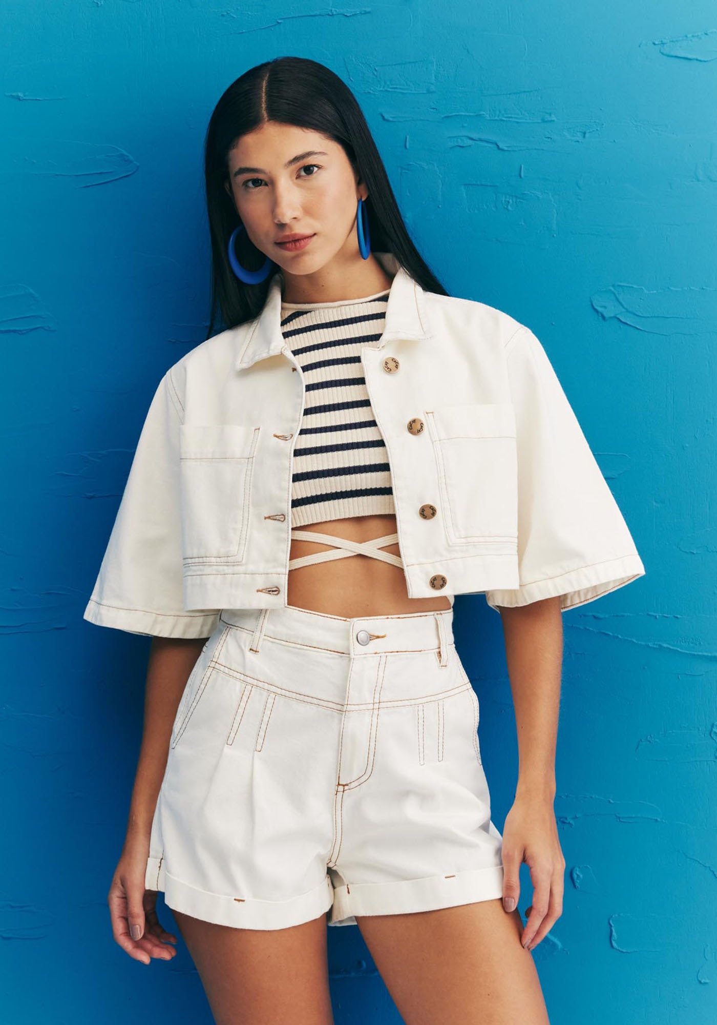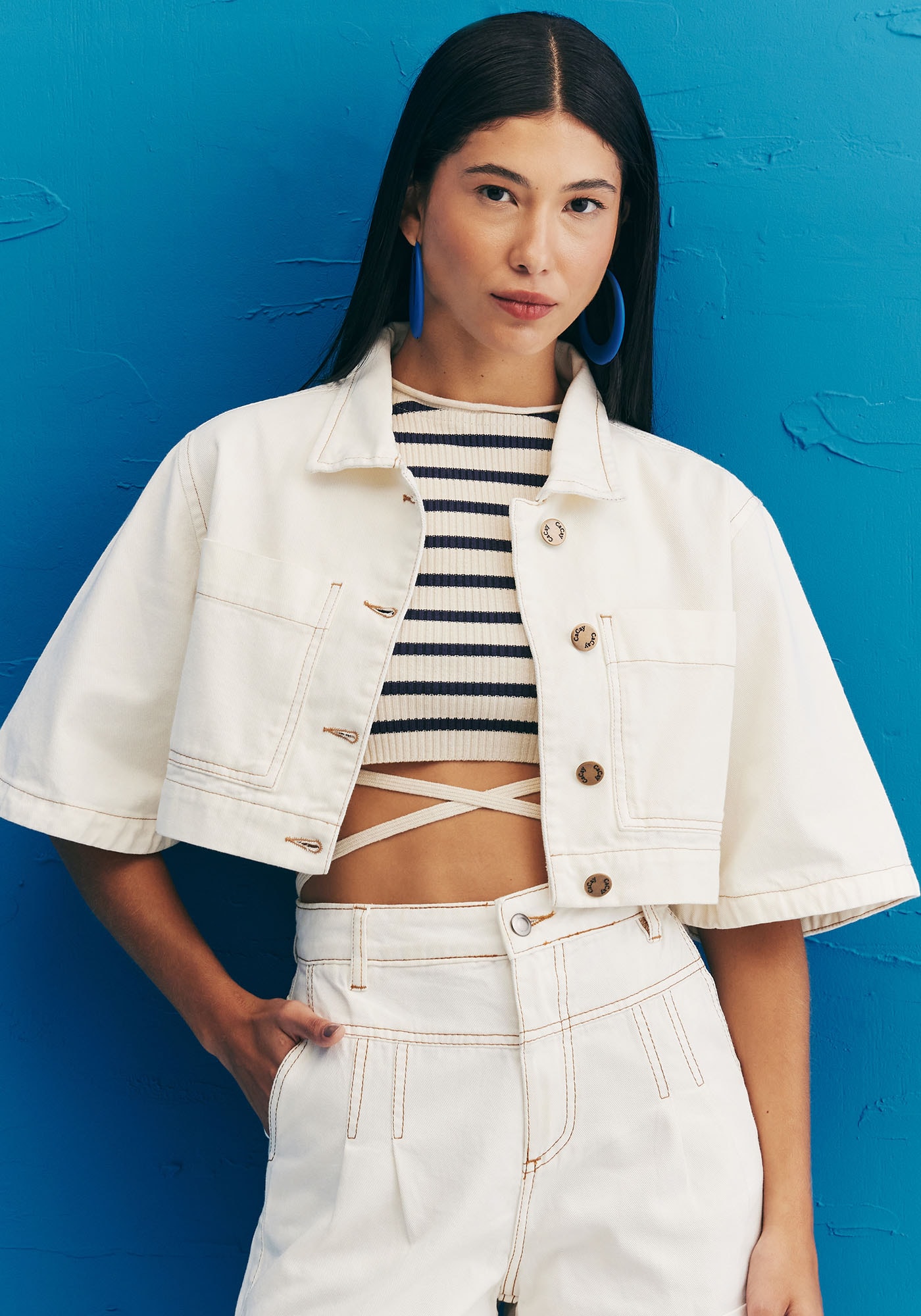 O cropped tricot é um modelomoderno e charmoso. Modelo cavado com decote alto, possui uma modelagem que seajusta perfeitamente ao corpo. Além disso, contém duas tiras que podem ser usadaspara fazer amarração e dar um toque diferenciado na peça.