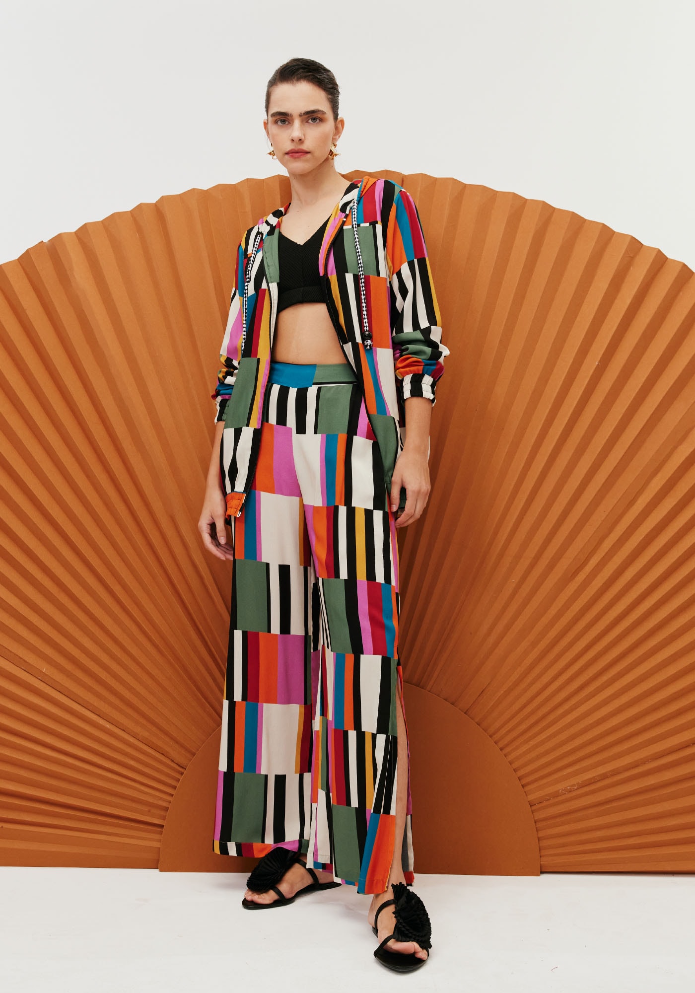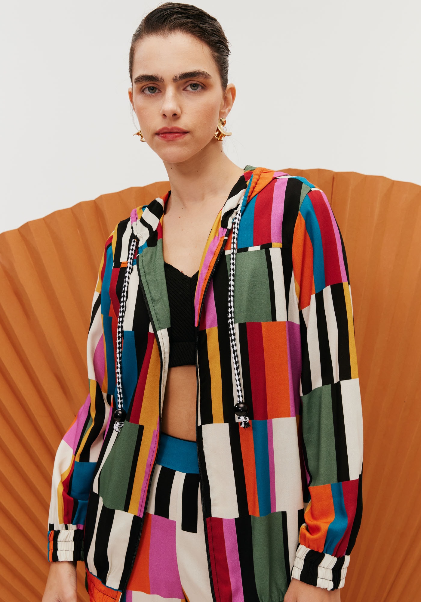 Confeccionado em tecido 100%viscose, a jaqueta é um modelo super estiloso. O modelo possui fechamento com zíperfrontal e capuz com amarração em corda. O elástico facilita a vestimenta e adaptaçãoao corpo.