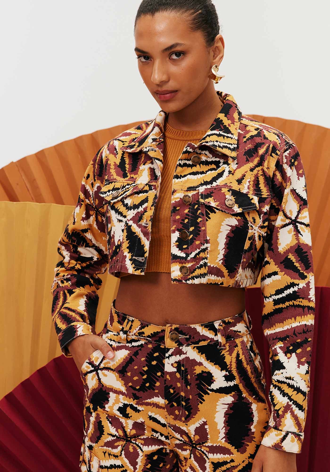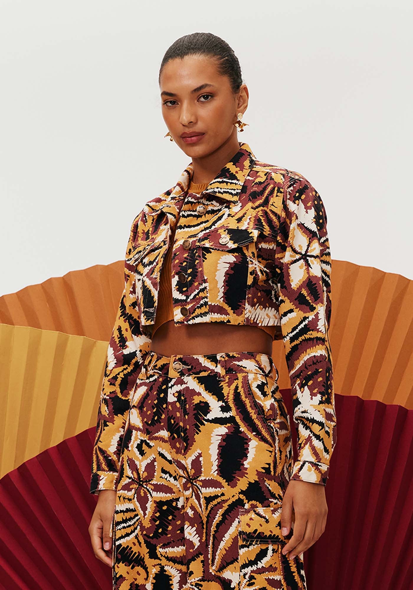 A jaqueta de sarja é a terceira peçaperfeita para compor o look com estilo. Confeccionada em sarja 100% algodão, omodelo cropped com diferentes recortes e manga longa é super moderno. Possuibolsos falsos e abotoamento frontal, o que deixa a peça mais prática.