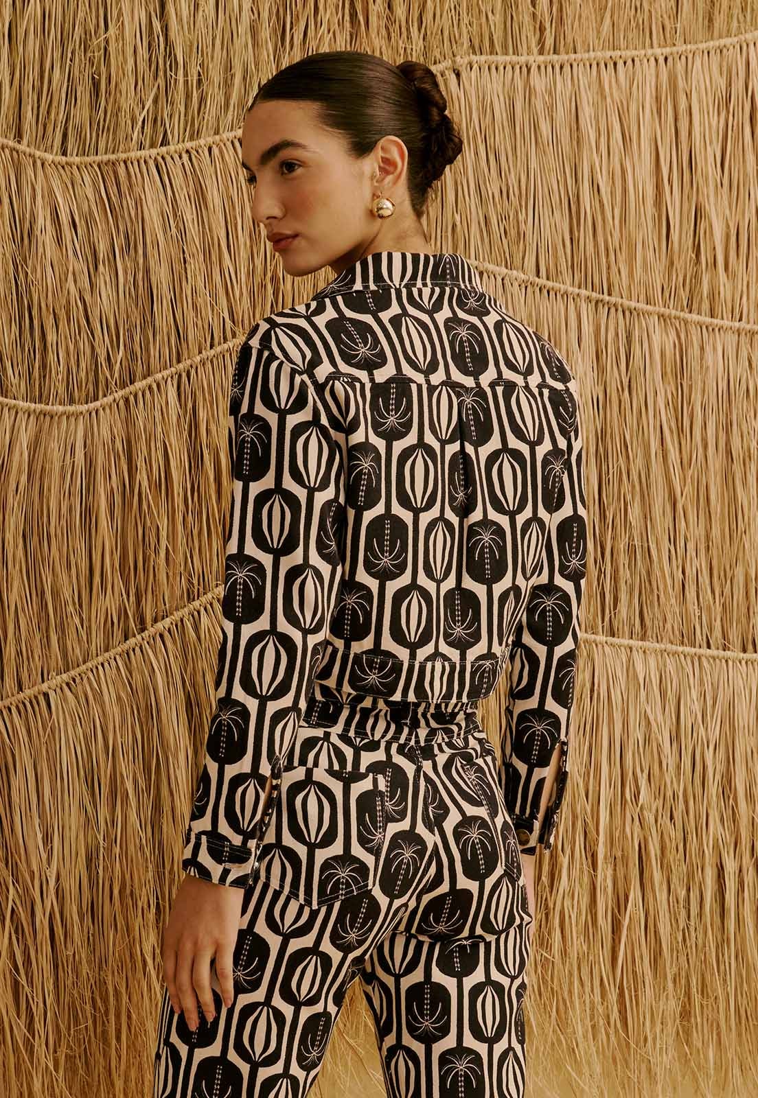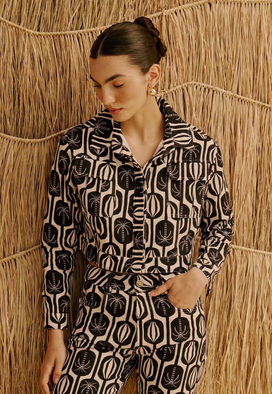 Confeccionada em sarja, garante conforto prolongado e resistência para o uso no dia a dia. Os botões frontais trazem funcionalidade e estilo, enquanto a estampa com elementos botânicos adiciona personalidade atemporal. Versátil, transita bem entre ocasiões casuais, trabalho ou encontros descontraídos. Combine com acessórios minimalistas, calças de alfaiataria ou uma saia fluida para compor looks modernos e sofisticados.