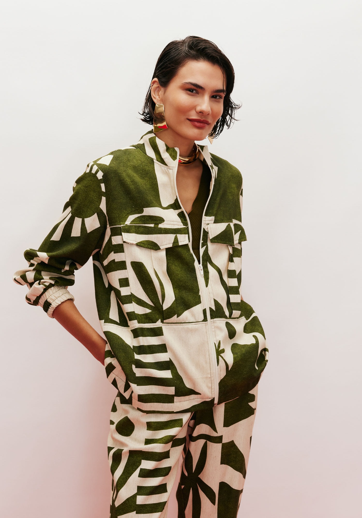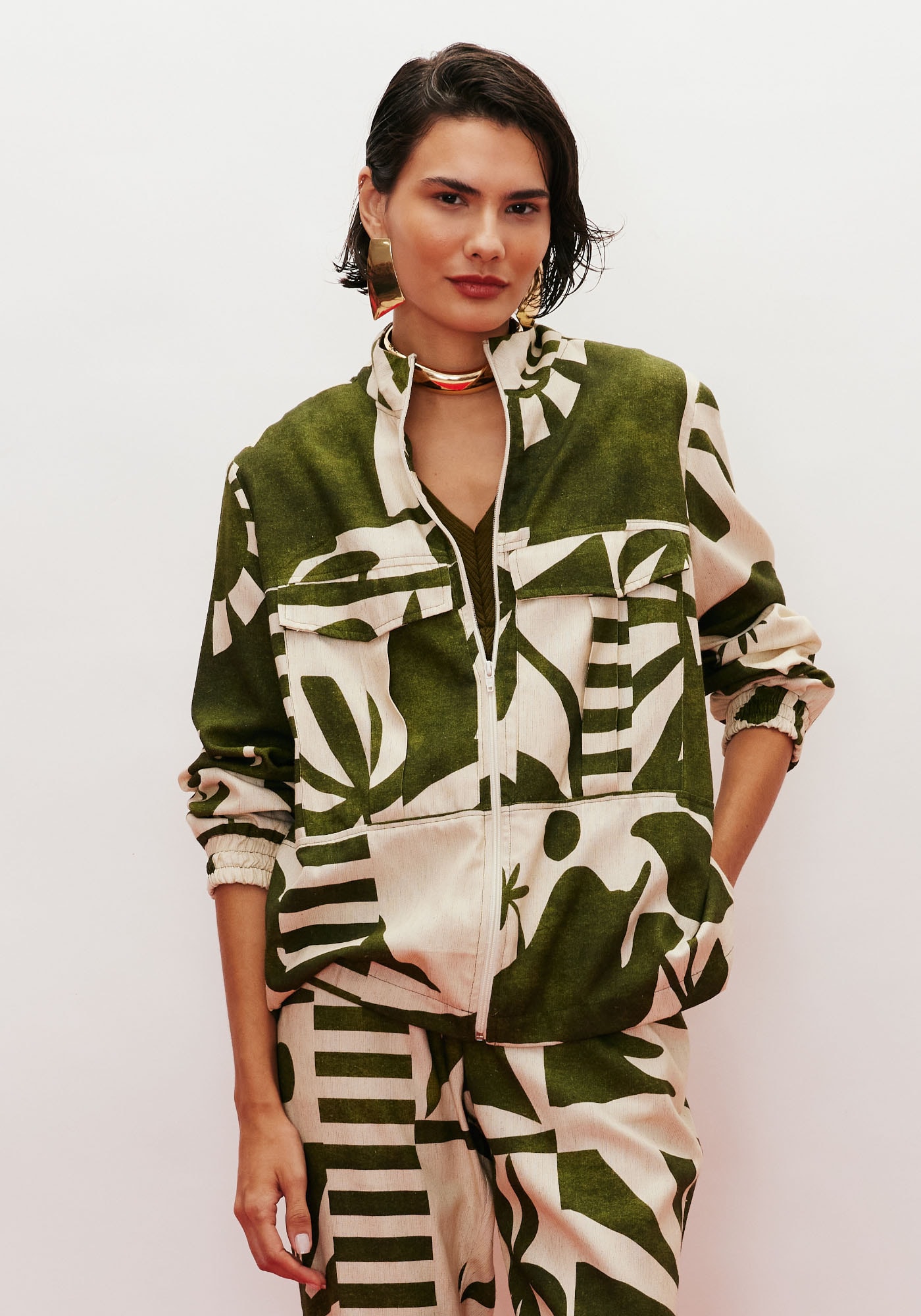 Confeccionada em tecido 42% algodão,38% viscose, 14% modal e 6% linho a jaqueta quadrada é um modelo super bonito,que vai bem em qualquer ocasião. Possui fechamento com zíper e bolsos frontais,além das mangas com elástico que podem ser facilmente ajustadas. A gola agregacharme a peça.
