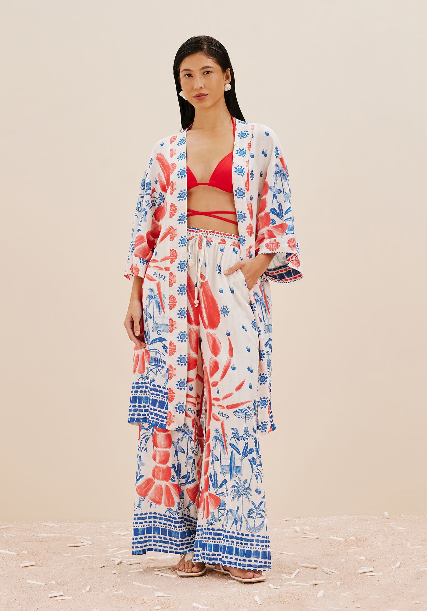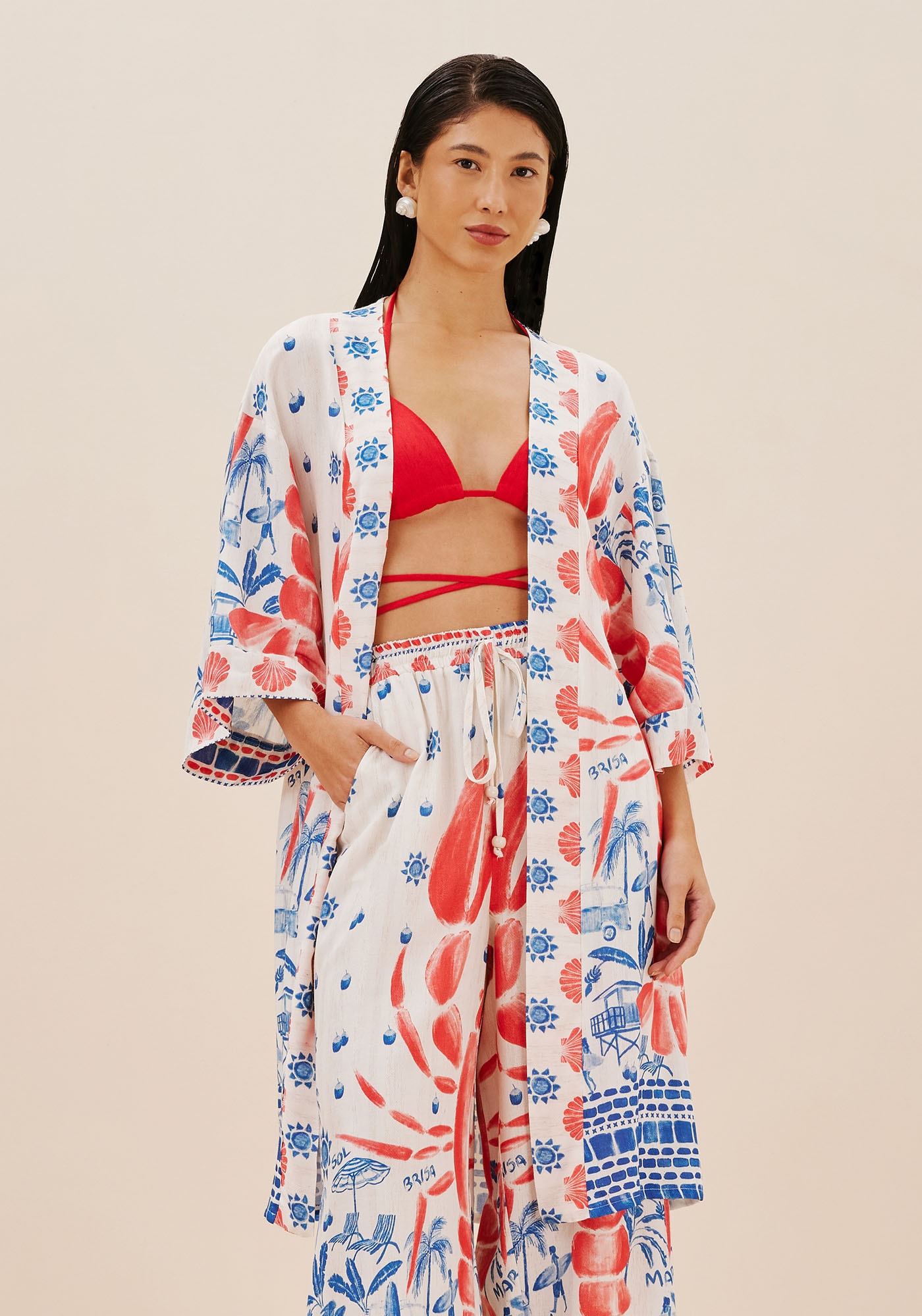 Encante-se com este Kimono que sedestaca pela deslumbrante estampa Icapui. Seu design é de de comprimentoalongado e mangas amplas que conferem movimento e leveza ao seu visual.Confeccionado em tecido de composição 97% Viscose 3% Linho, é a peça ideal paracompor looks despojados e com muita personalidade.