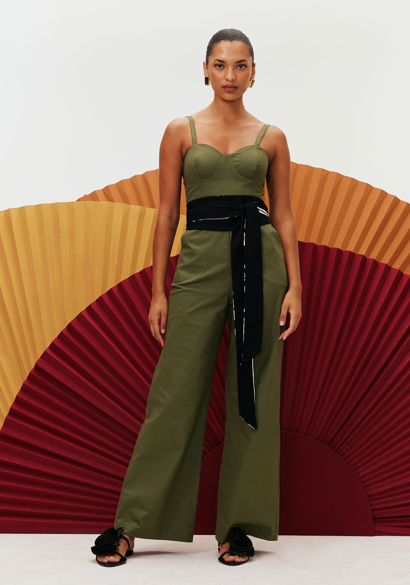 Este deslumbrante modelo demacacão é confeccionado em tecido de composição 97% algodão e 3% elastano. Estapeça confere elegância e sofisticação. Possui decote coração com alças finas reguláveise calça de amplitude pantalona. Sua modelagem é mais ajustada até a cintura, quecontribui para valorização da silhueta. Seu fechamento é em zíper na parte dascostas.