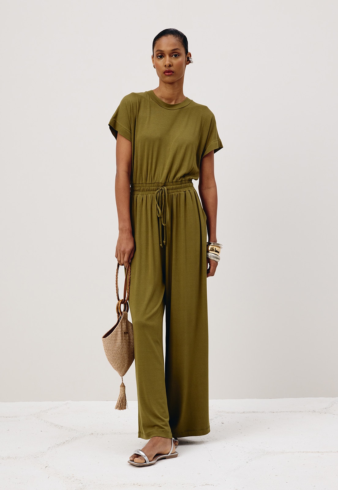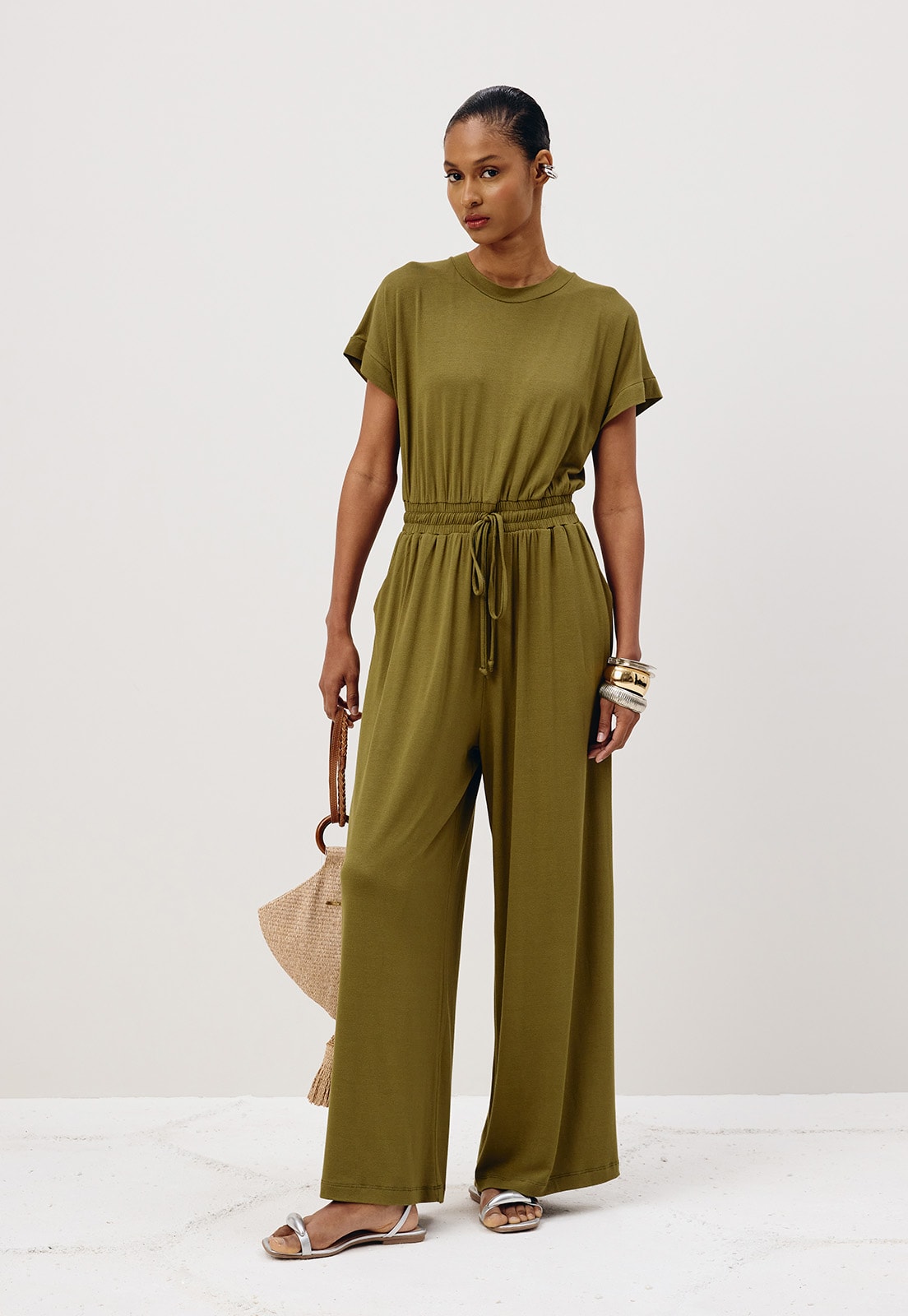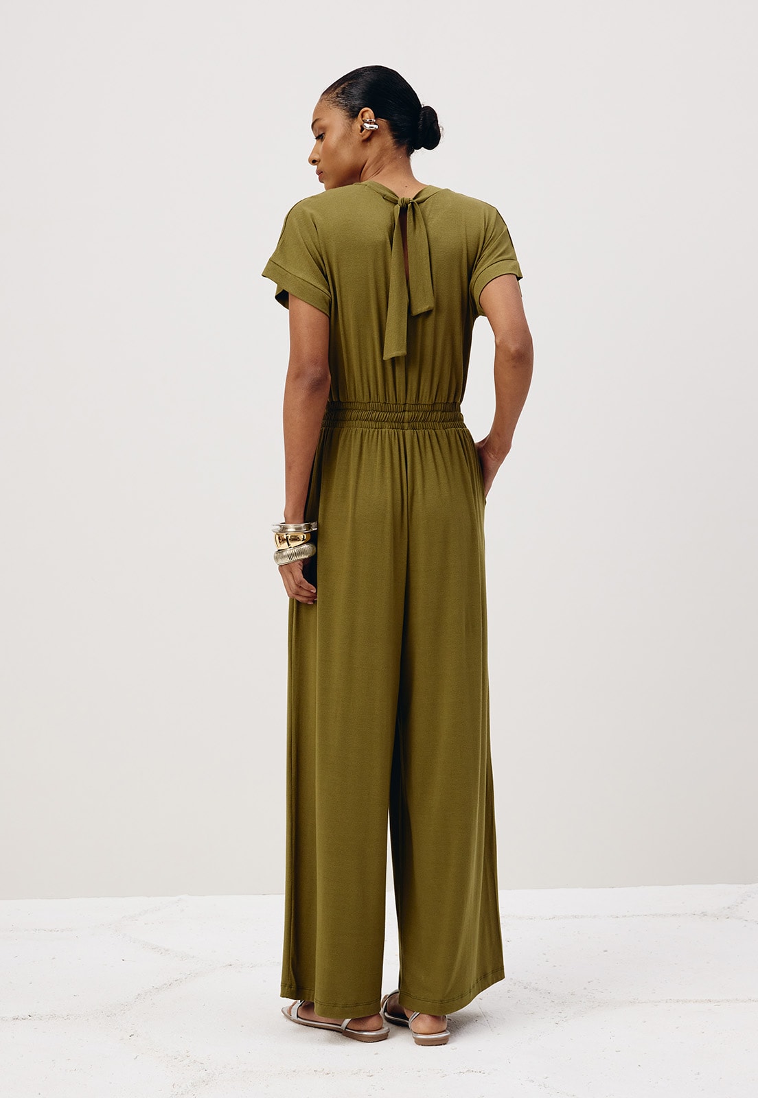 Combine com sandálias minimalistas para um look casual chic ou aposte em acessórios marcantes para transformar o visual em algo sofisticado. Seja qual for a escolha, este macacão é a base perfeita para criar produções atemporais e cheias de personalidade.