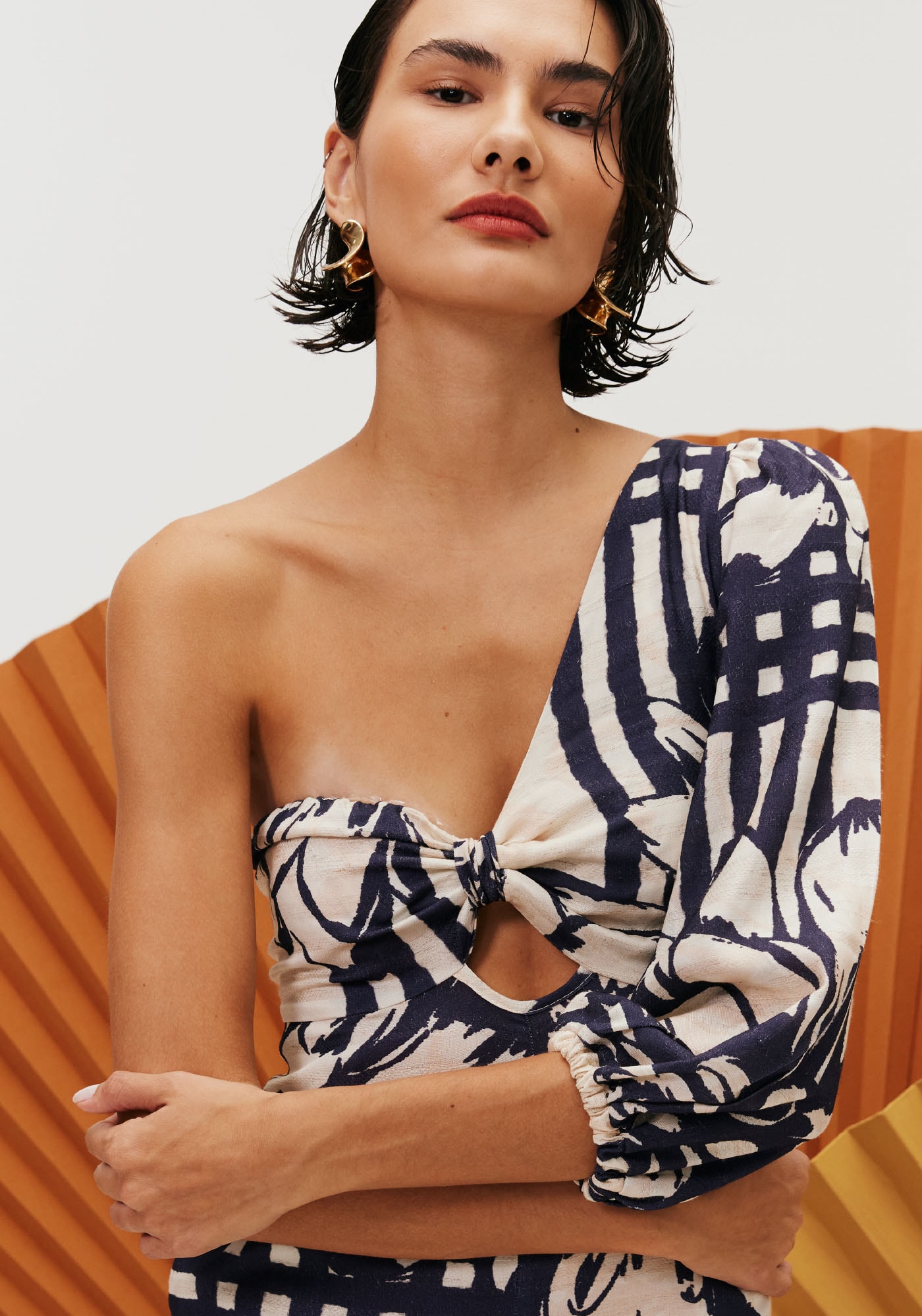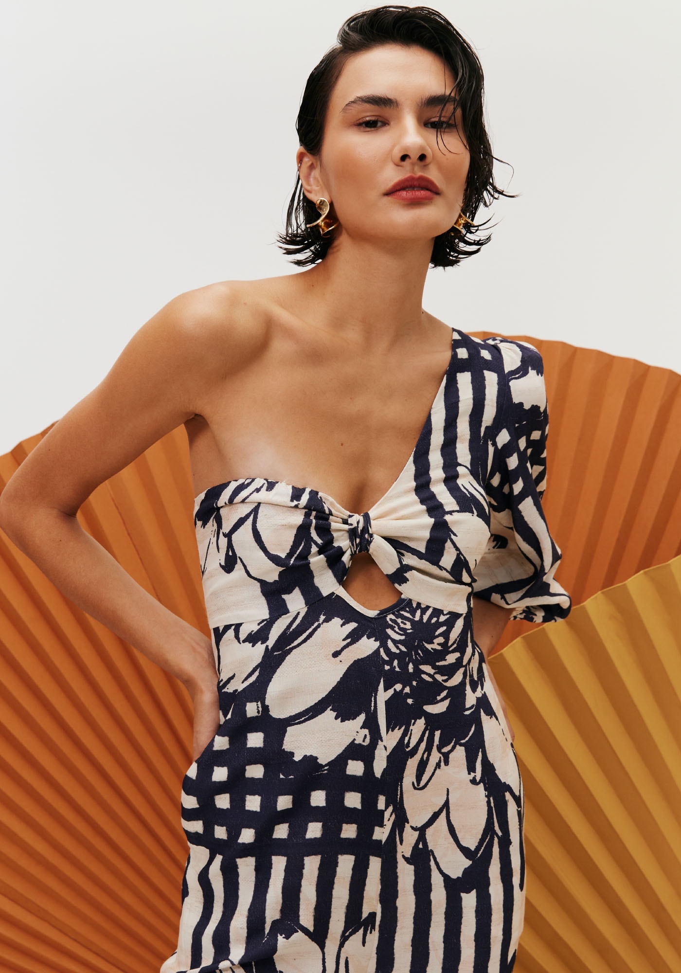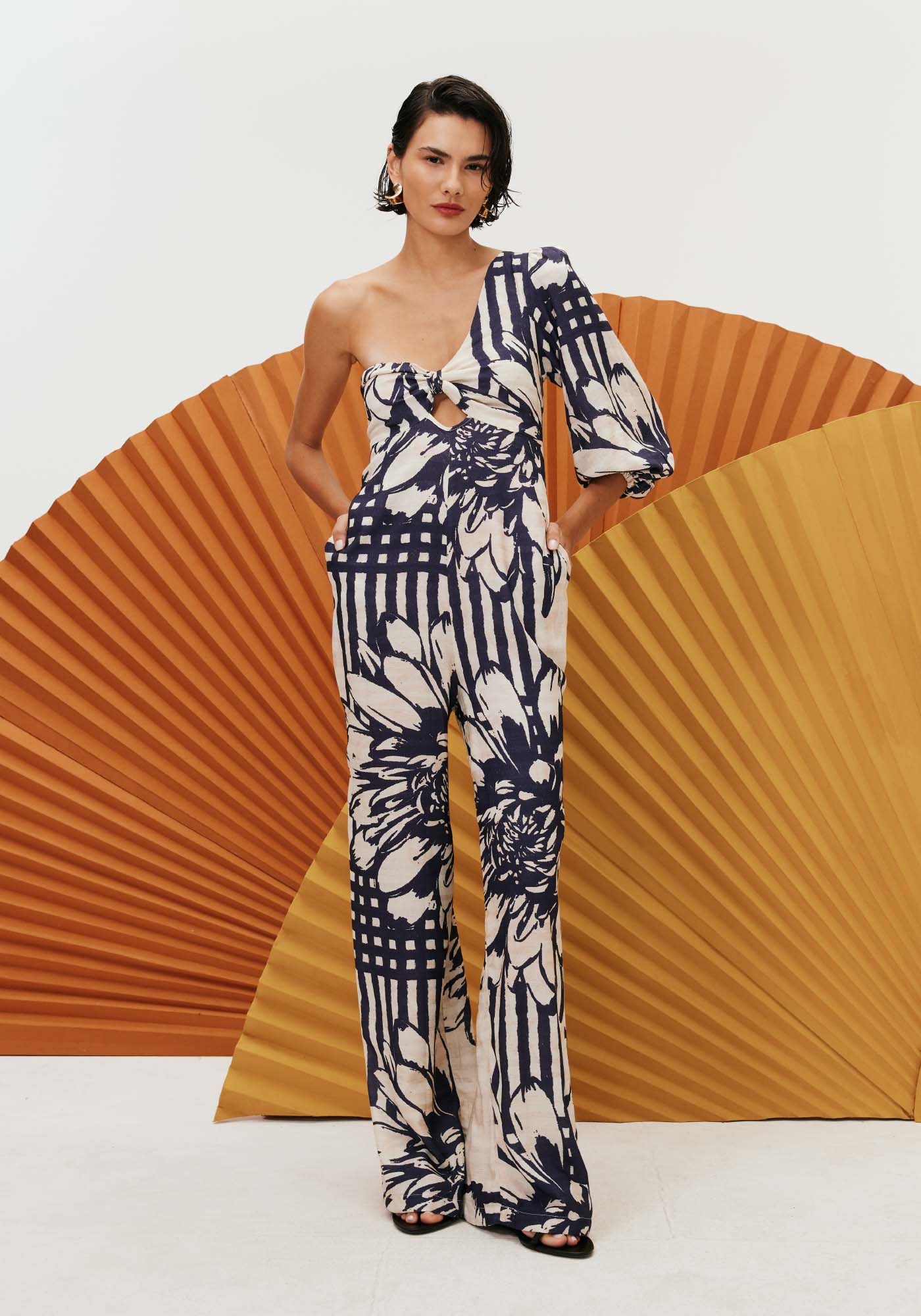 Sofisticado e ousado, o macacão é umapeça marcante, que merece destaque. Modelo de um ombro só, possui manga longacuja altura pode ser ajustada e decote no formato do busto, valorizando o coloe a silhueta. Nas costas a amarração é cruzada, trazendo um charme a mais parao modelo.
