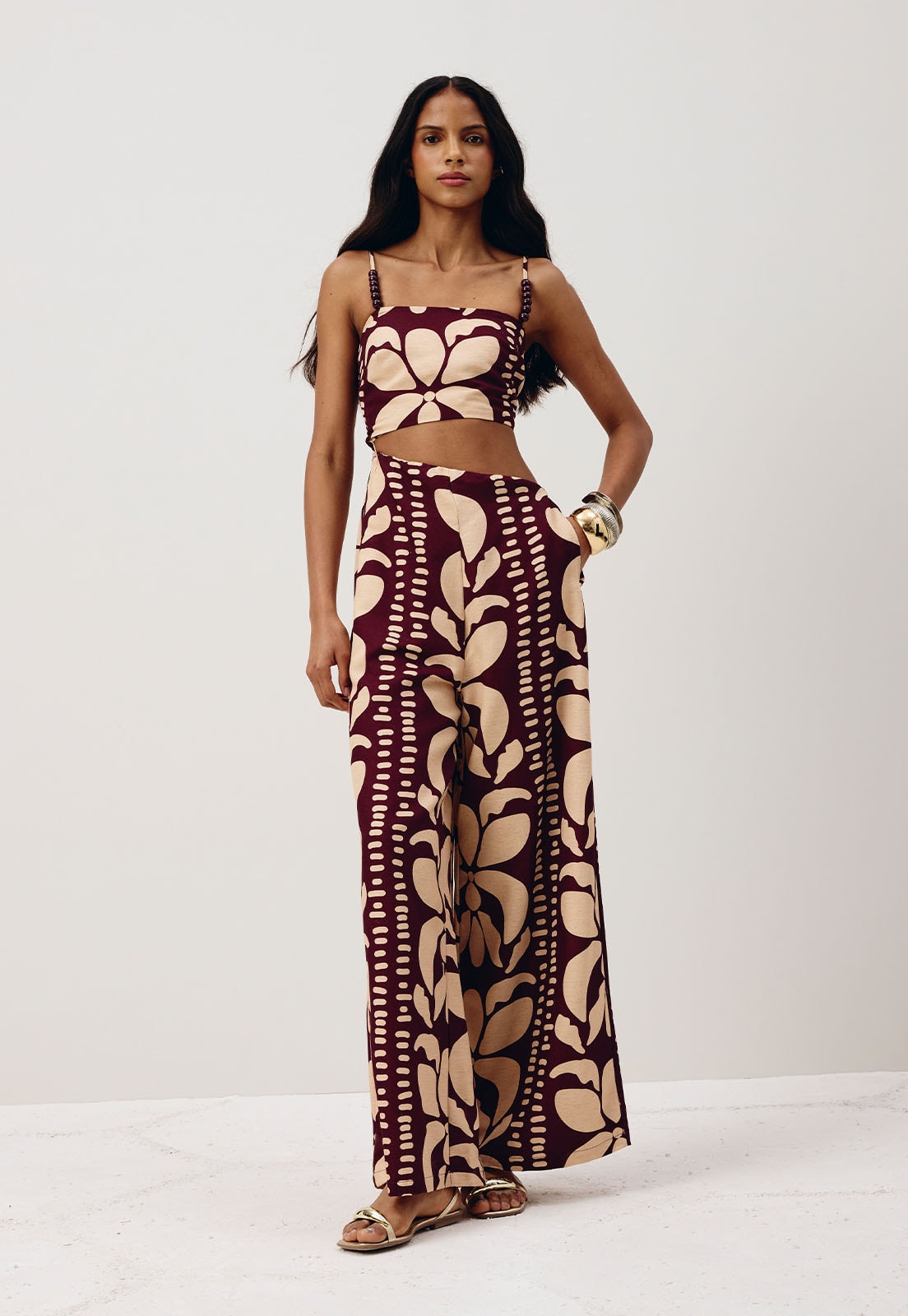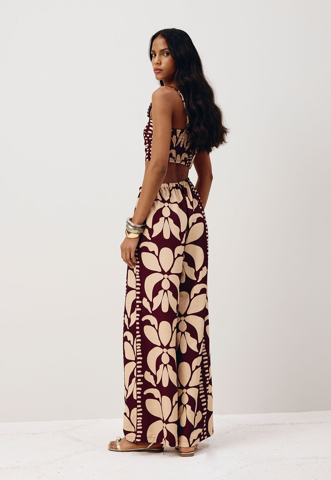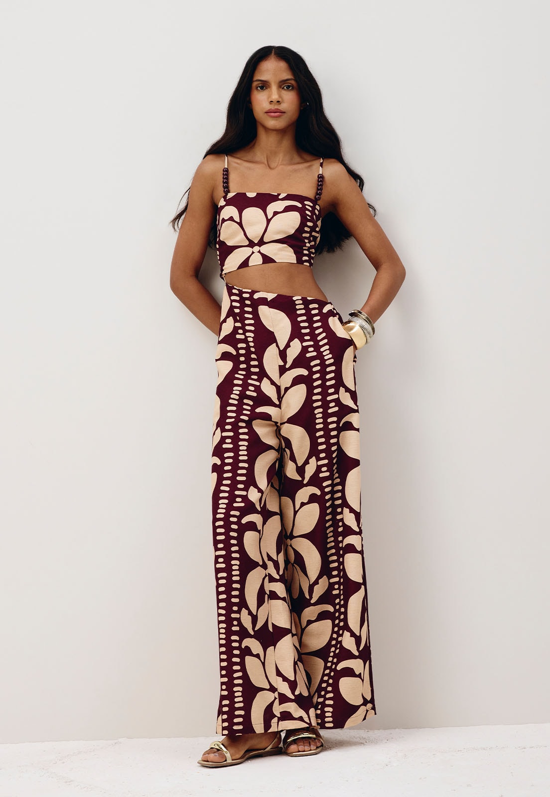 O macacão estampado Calle é confeccionado em tecido 50% algodão 29% viscose 15% modal e 6% linho. O modelo belíssimo possui alça fina com ponteira e recorte mostrando parte do corpo de uma forma sensual, valorizando a silhueta. Possui lástex e elástico na parte de trás e uma modelagem ampla.
