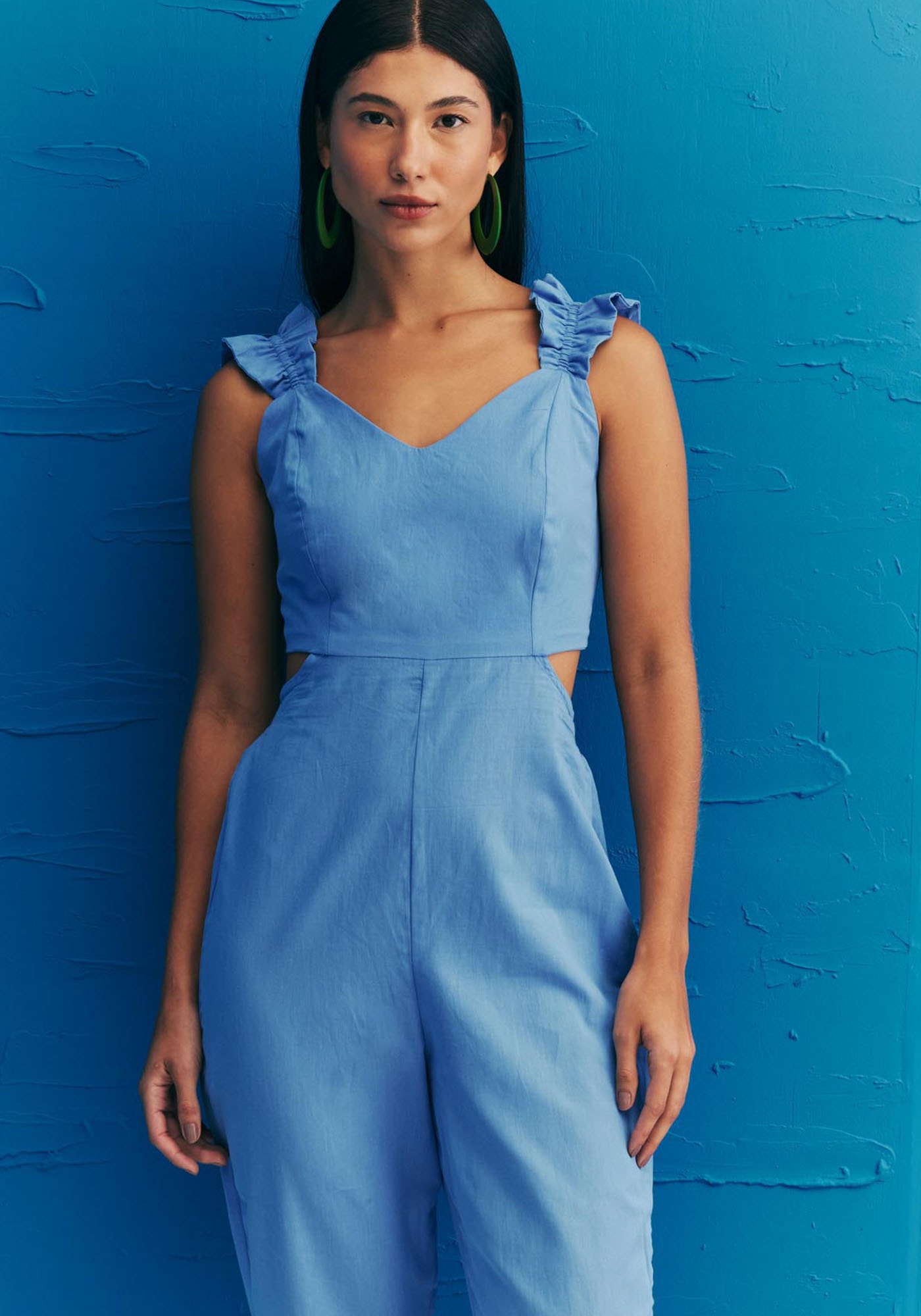 Confeccionado em tecido 100%algodão, o macacão liso é super charmoso. O modelo possui recortes laterais eelástico nas costas, proporcionando uma melhor vestibilidade. A alça com babadoé uma graça e destaca a peça.