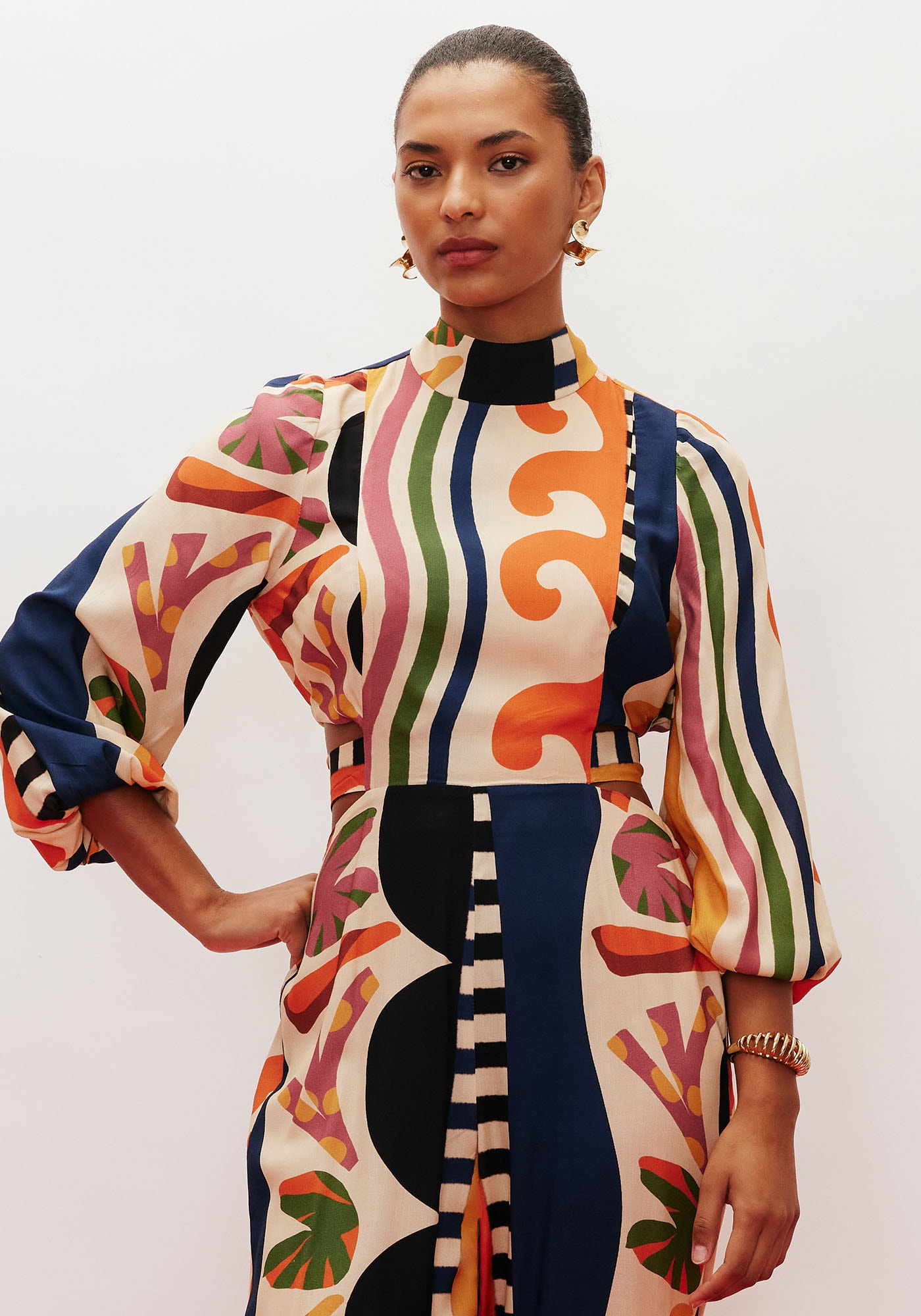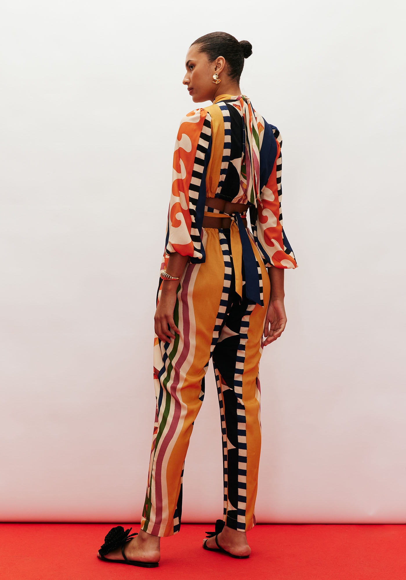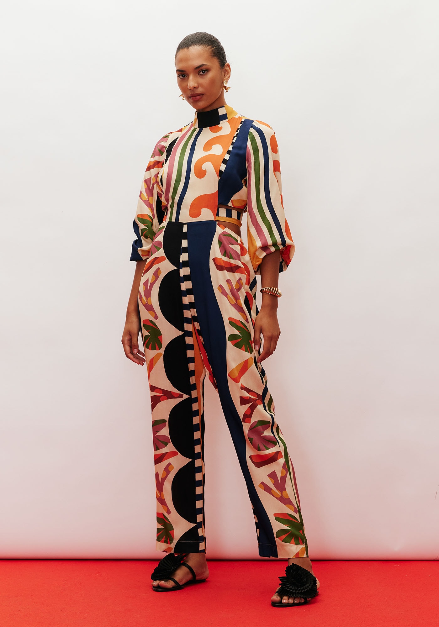Confeccionado em tecido 100% viscose,o macacão estampado é um modelo sofisticado. Possui detalhe lateral comamarração em faixa e manga bufante com elástico, que pode ser facilmente ajustadapara o tamanho desejado. A golinha alta dá um toque elegante para a peça. Acalça cenoura possui elástico na parte de trás, facilitando a vestibilidade.