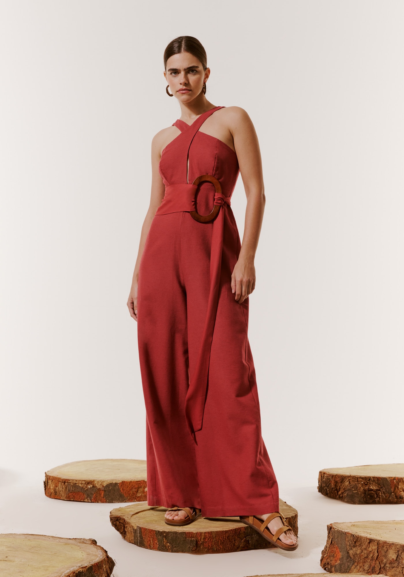 Este lindomacacão confeccionado em 42% algodão, 38% viscose, 14% modal e 6% linho é umamistura de modernidade e elegância. Apresenta uma linda cor avermelhada e umdecote transversal bem ajustado, enquanto sua modelagem pantalona proporcionaconforto e sofisticação. A cintura possui ajuste e conta com um toque especialque remete um cinto.
