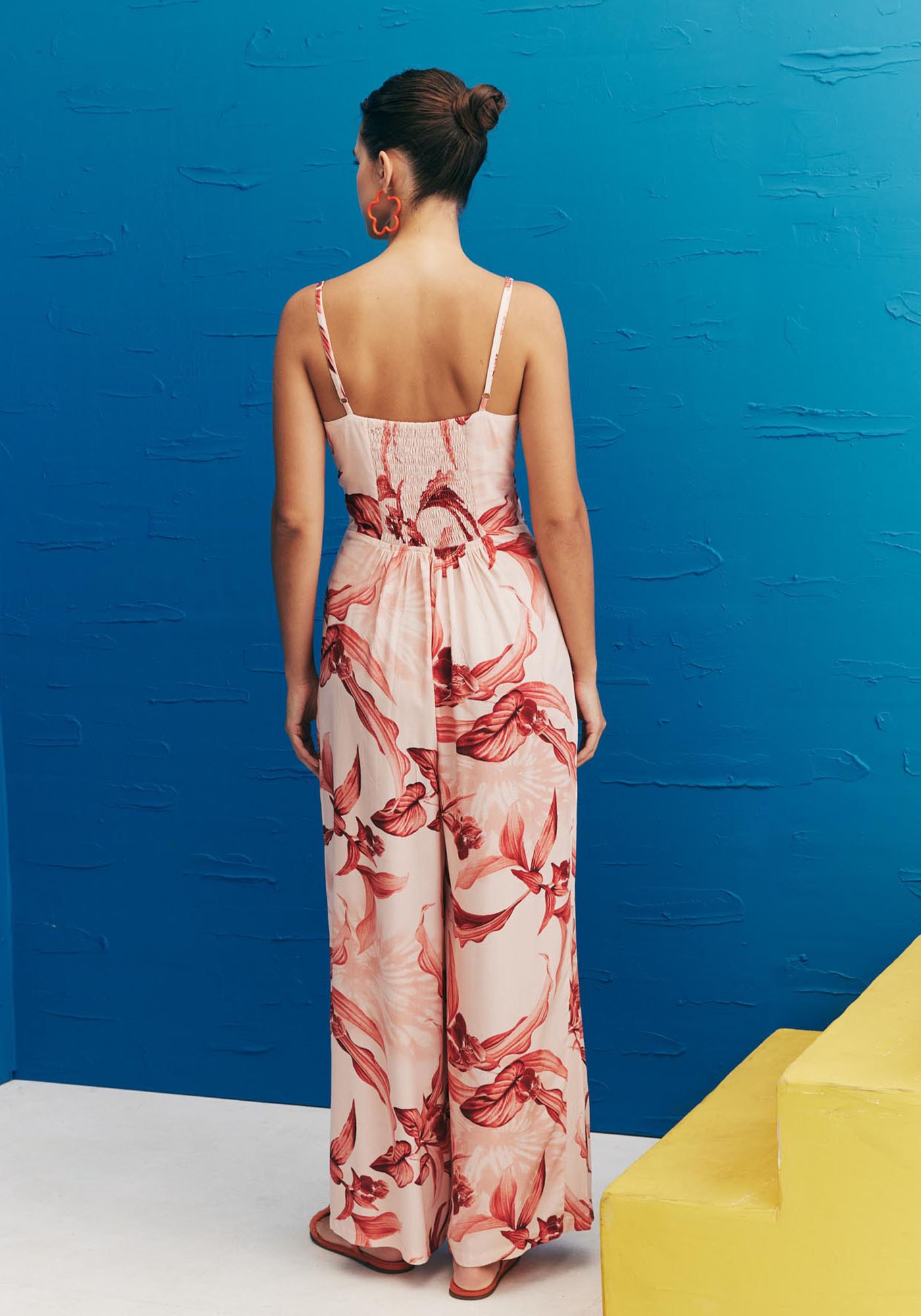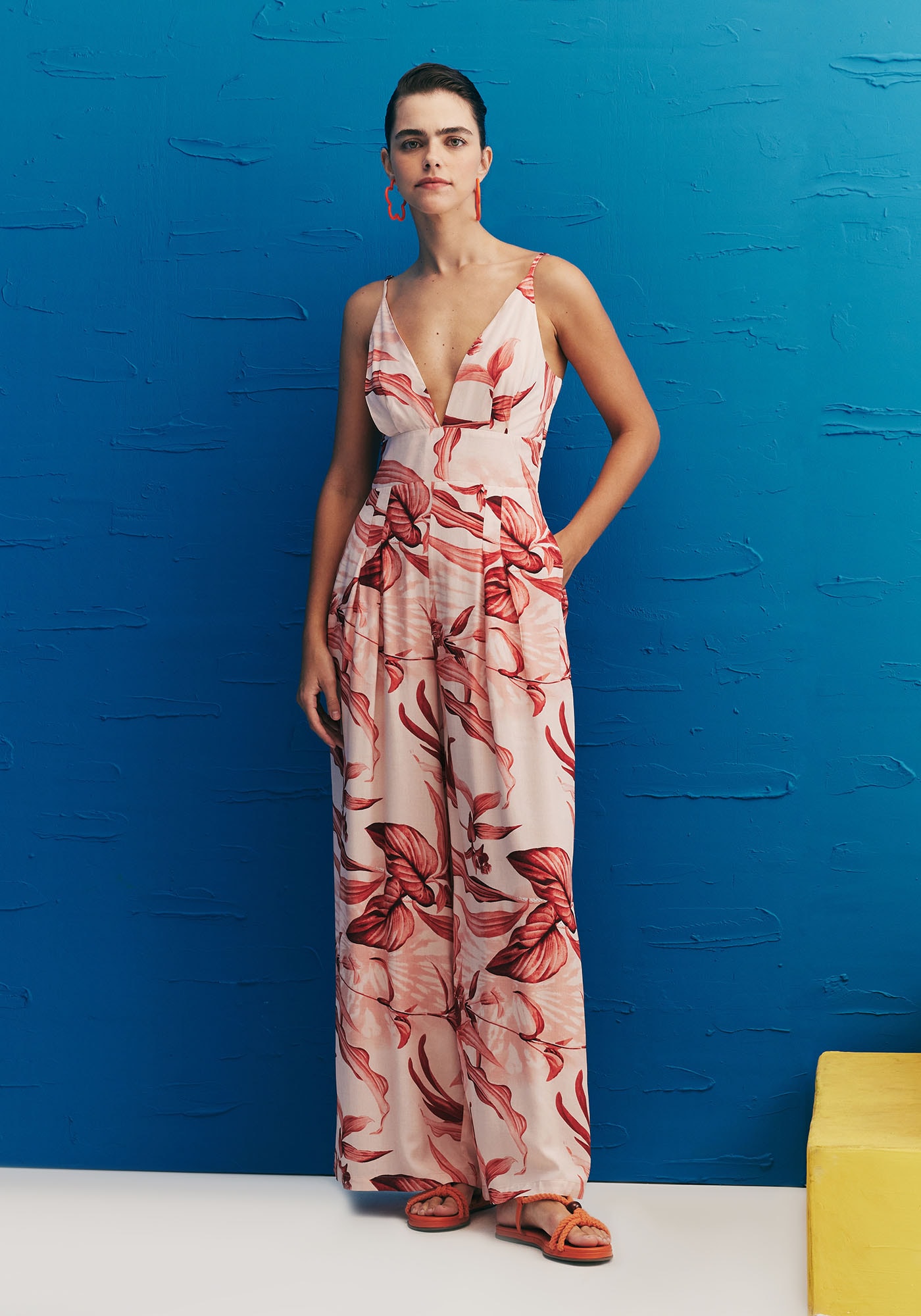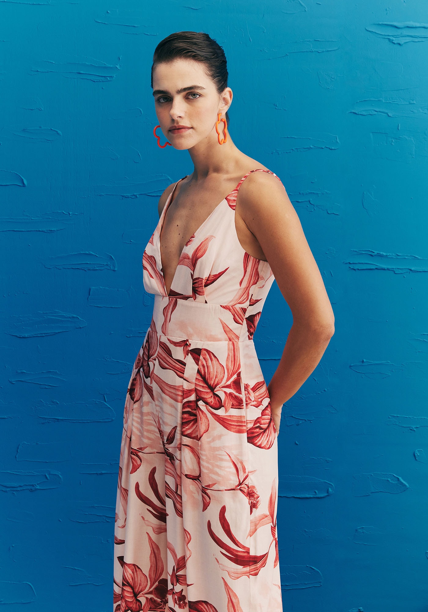 Confeccionado em 100% viscose, O MacacãoEstampado Las Orquideas exala elegância e estilo. Esta peça apresenta um decoteprofundo em V na parte frontal que traz um toque ousado de maneira sofisticada.A pala na cintura cria uma silhueta definida, enquanto a calça pantalona compregas proporciona conforto e liberdade de movimento. As alças finas adicionamdelicadeza e o lastex nas costas faz com que a peça tenha um ajuste ideal aocorpo.