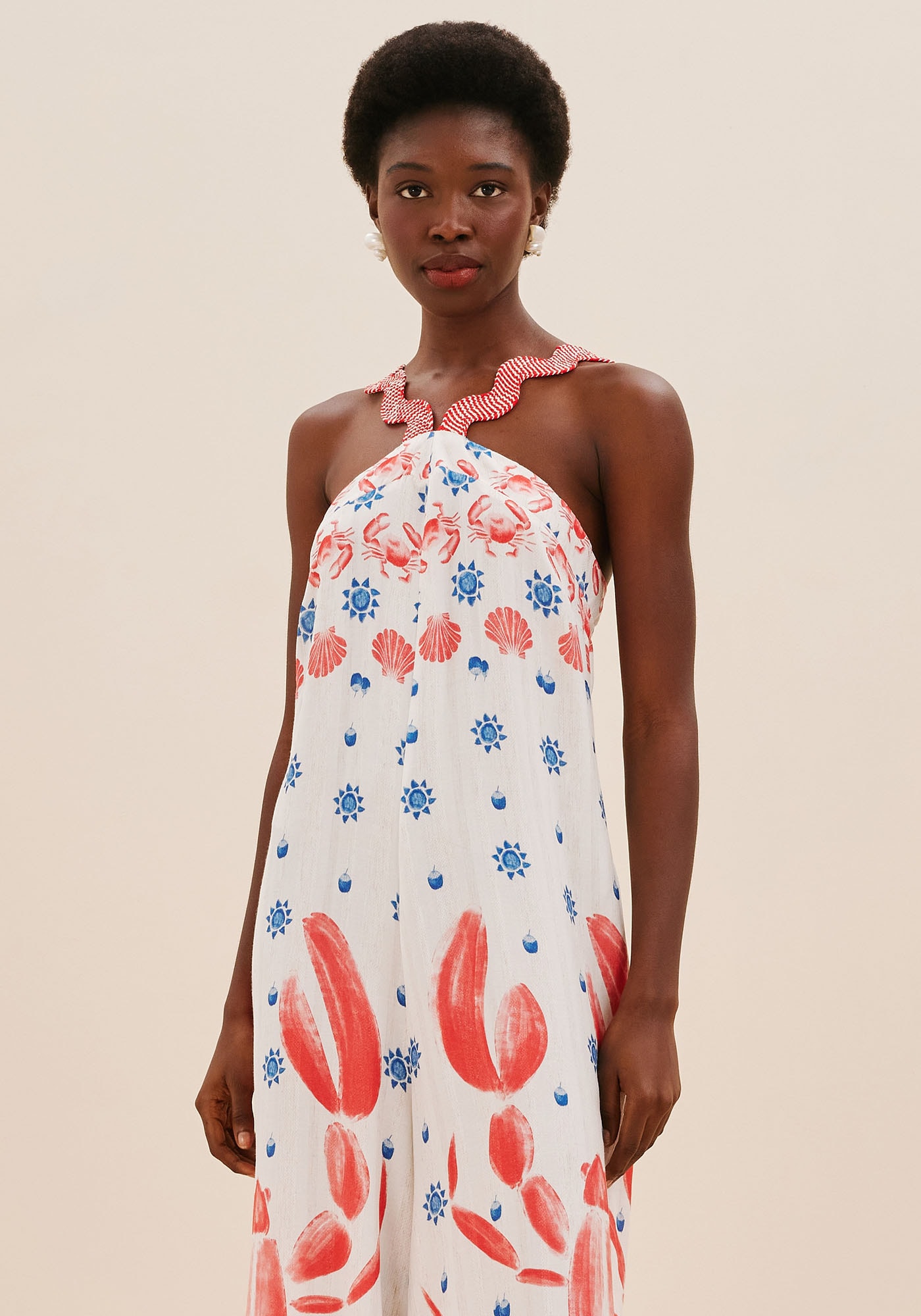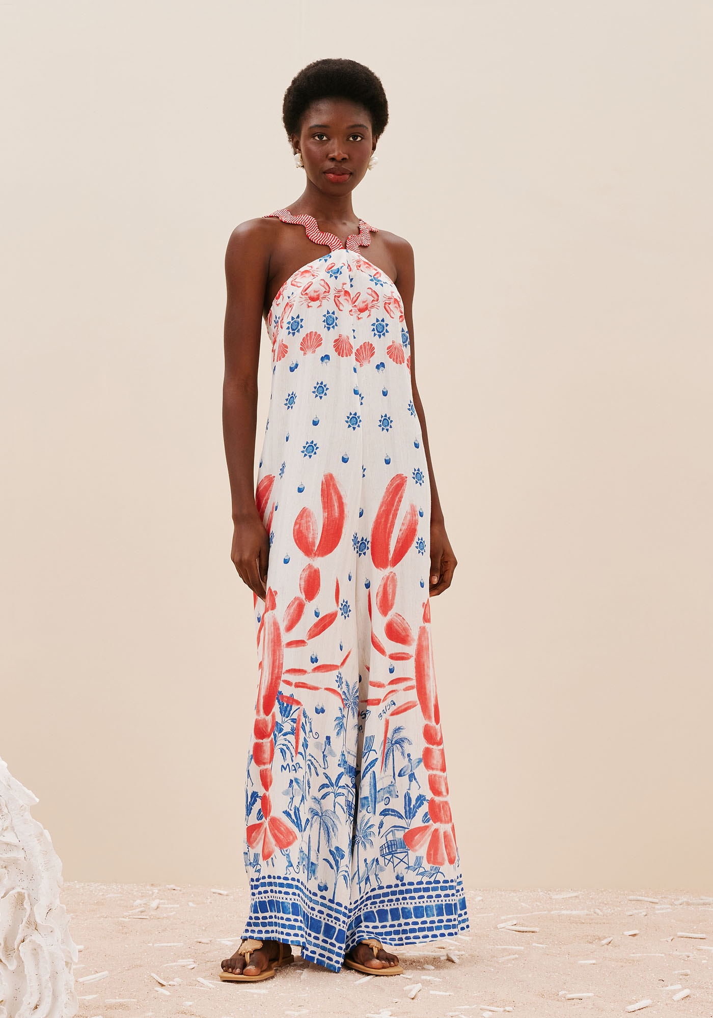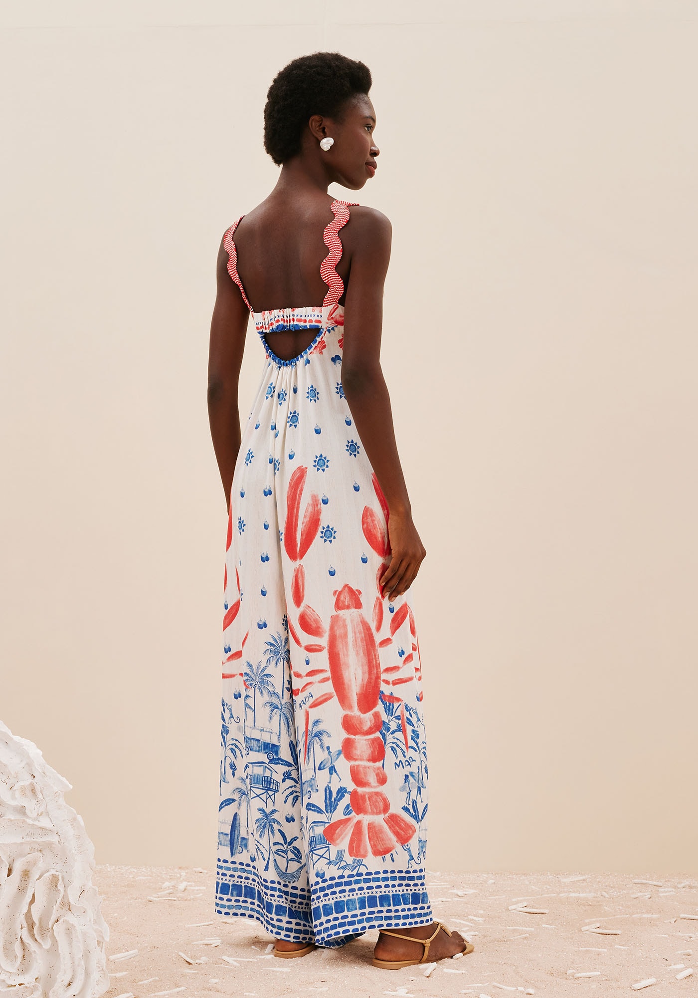 Este Macacão Estampado é uma peçadeslumbrante que combina o clássico decote frente única com o detalhe charmosodas alças em sianinha adicionando um toque artesanal e estiloso à peça. A calçapantalona proporciona leveza e movimento além de trazer sofisticação enquanto olastex na parte das costas garante conforto e ajuste personalizado. Suacomposição é 97% Viscose 3% Linho.