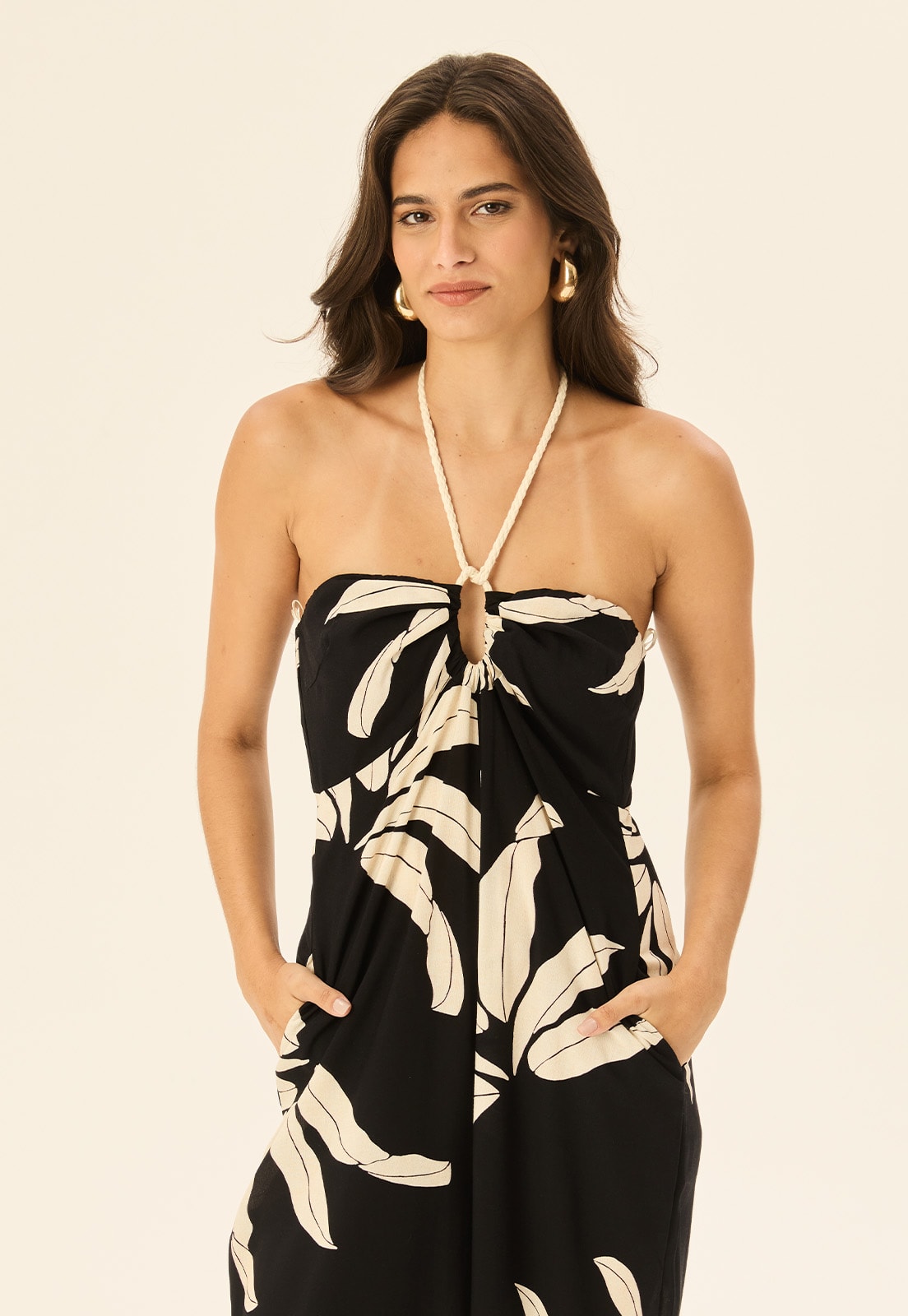 Confeccionado em 100% viscose, o tecido é leve, ideal para uso prolongado com conforto térmico. Os bolsos laterais e a amarração ajustável no pescoço reforçam a praticidade da peça, que transita bem entre ocasiões casuais, compromissos do dia a dia e eventos informais. A estampa adiciona personalidade sem perder a sofisticação. Combine com acessórios naturais, sandálias de tiras ou uma clutch minimalista para compor um visual versátil e elegante. Vista o toque leve da CaCay e sinta-se pronta para qualquer momento.