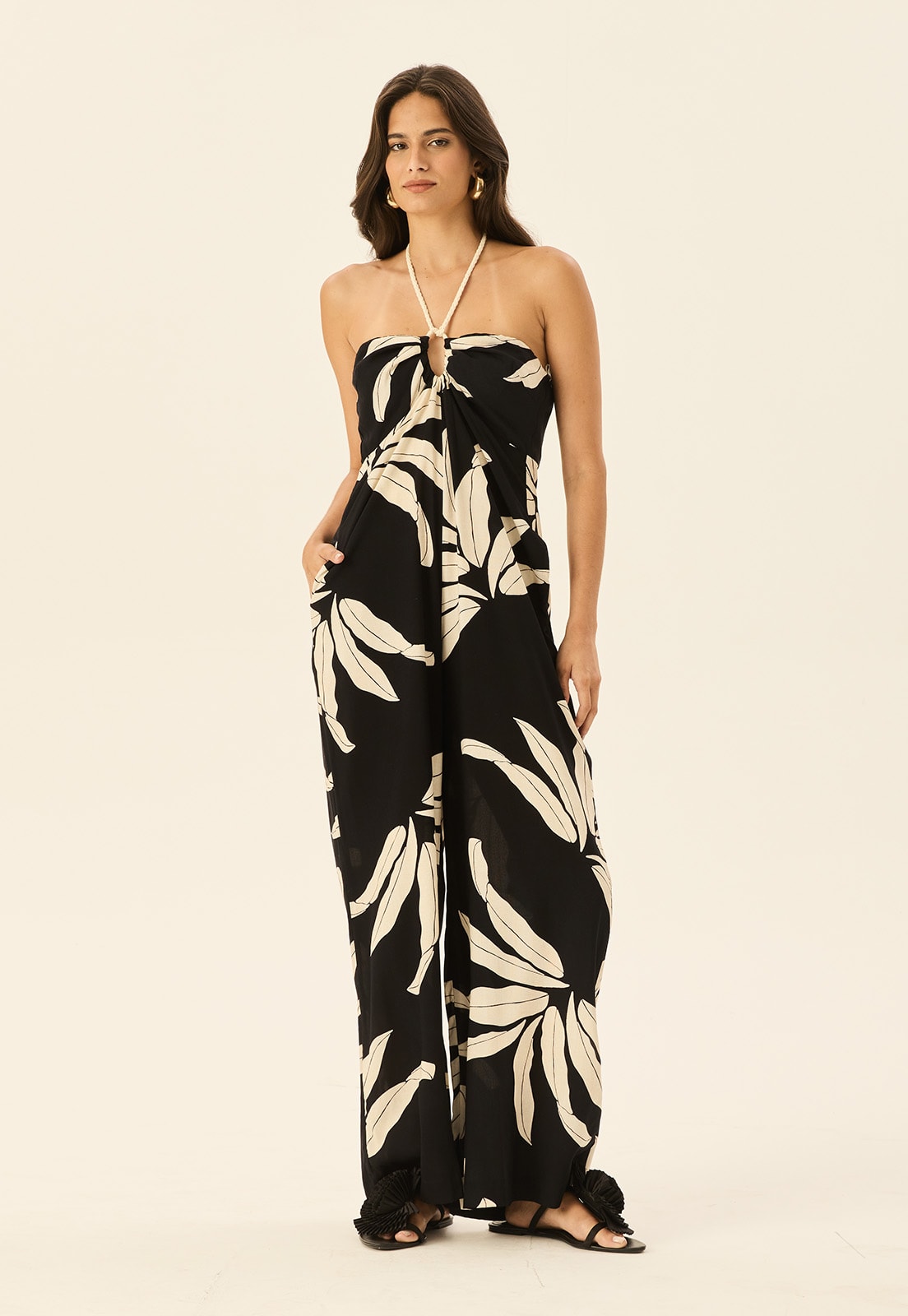 O Macacão Detalhe Túnel Corda Estampado Floral da CaCay tem modelagem ampla e fluida, com caimento leve e confortável que acompanha o corpo sem marcar. O busto é ajustado pela amarração no pescoço, criando um discreto detalhe em túnel, enquanto a cintura e o quadril seguem soltos, favorecendo diferentes silhuetas. O comprimento é longo e elegante, com pernas amplas que proporcionam movimento. A modelo da foto tem 1,75 m, veste manequim 36 e está usando o tamanho P. A forma é grande, então, se estiver entre dois tamanhos, recomendamos optar pelo menor. Consulte a tabela de medidas para mais precisão.