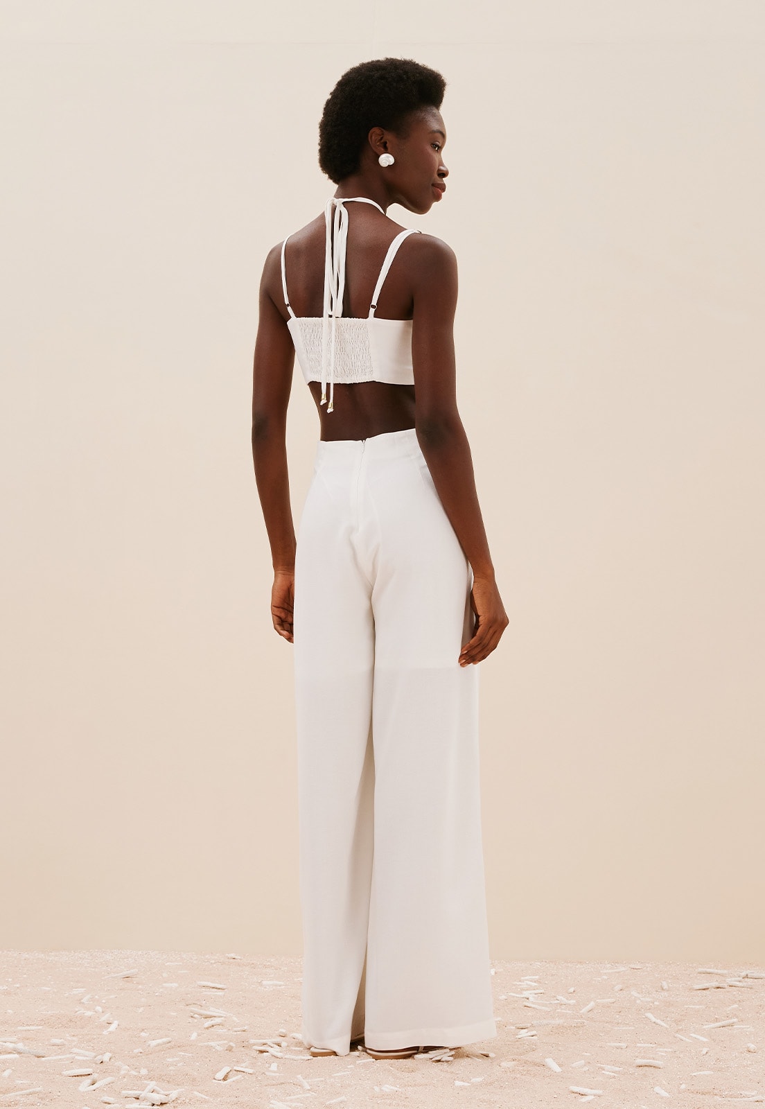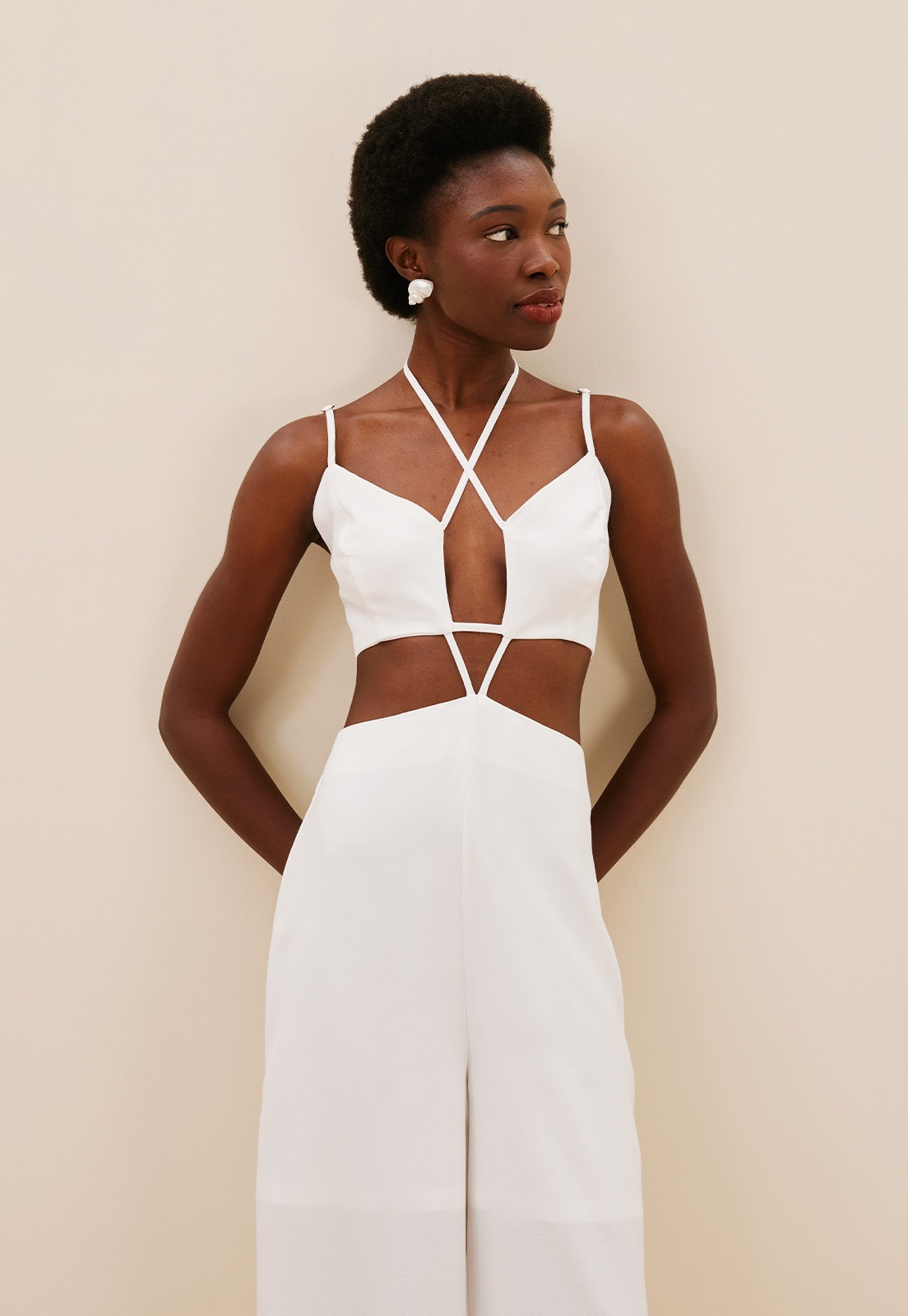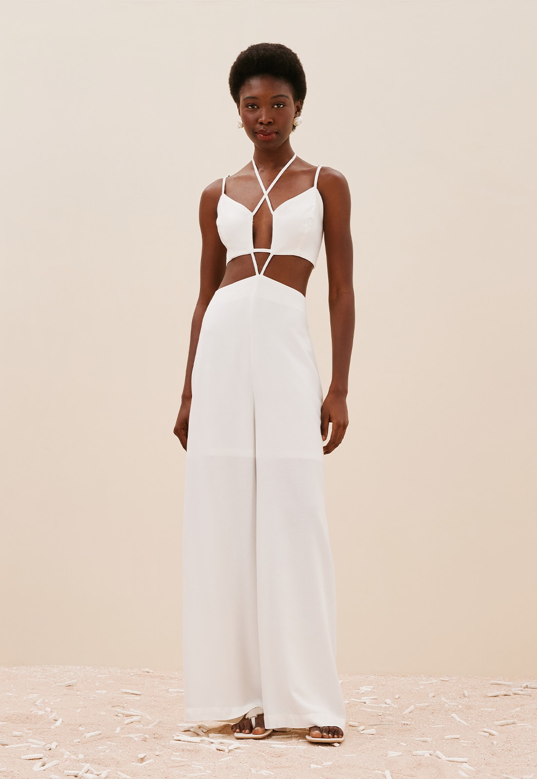 O Macacão Detalhe Viés é uma peça única, ideal para quem busca um look com muito estilo. Confeccionado em 100% Viscose, apresenta recortes na parte frontal e amarração no pescoço trazendo um toque contemporâneo para a peça. Possui lastex na parte das costas e alças finas ajustáveis, para um caimento personalizado e que proporciona conforto. A calça de modelagem pantalona apresenta fechamento em zíper invisível nas costas.
