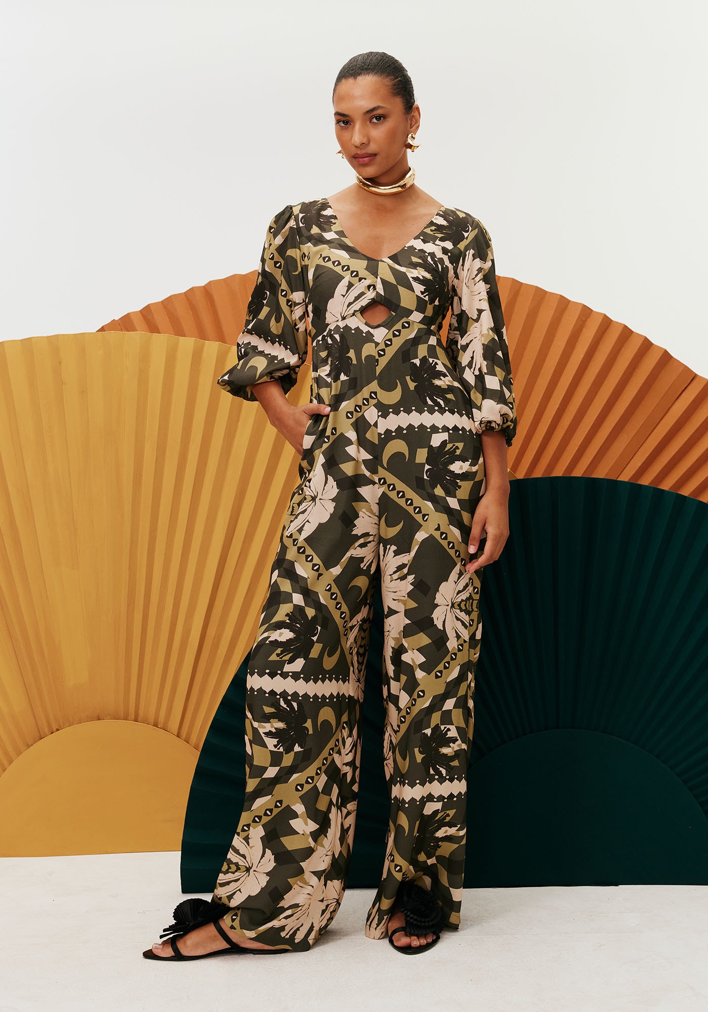 Este encantador macacãoé confeccionado em tecido de viscose. Apresenta mangas 3/4 e calça de amplitudepantalona, além disso tem bolsos que conferem mais praticidade ao modelo. Possuirecorte na parte frontal que traz mais estilo e ousadia, e suas costas temdecote com detalhe de amarração