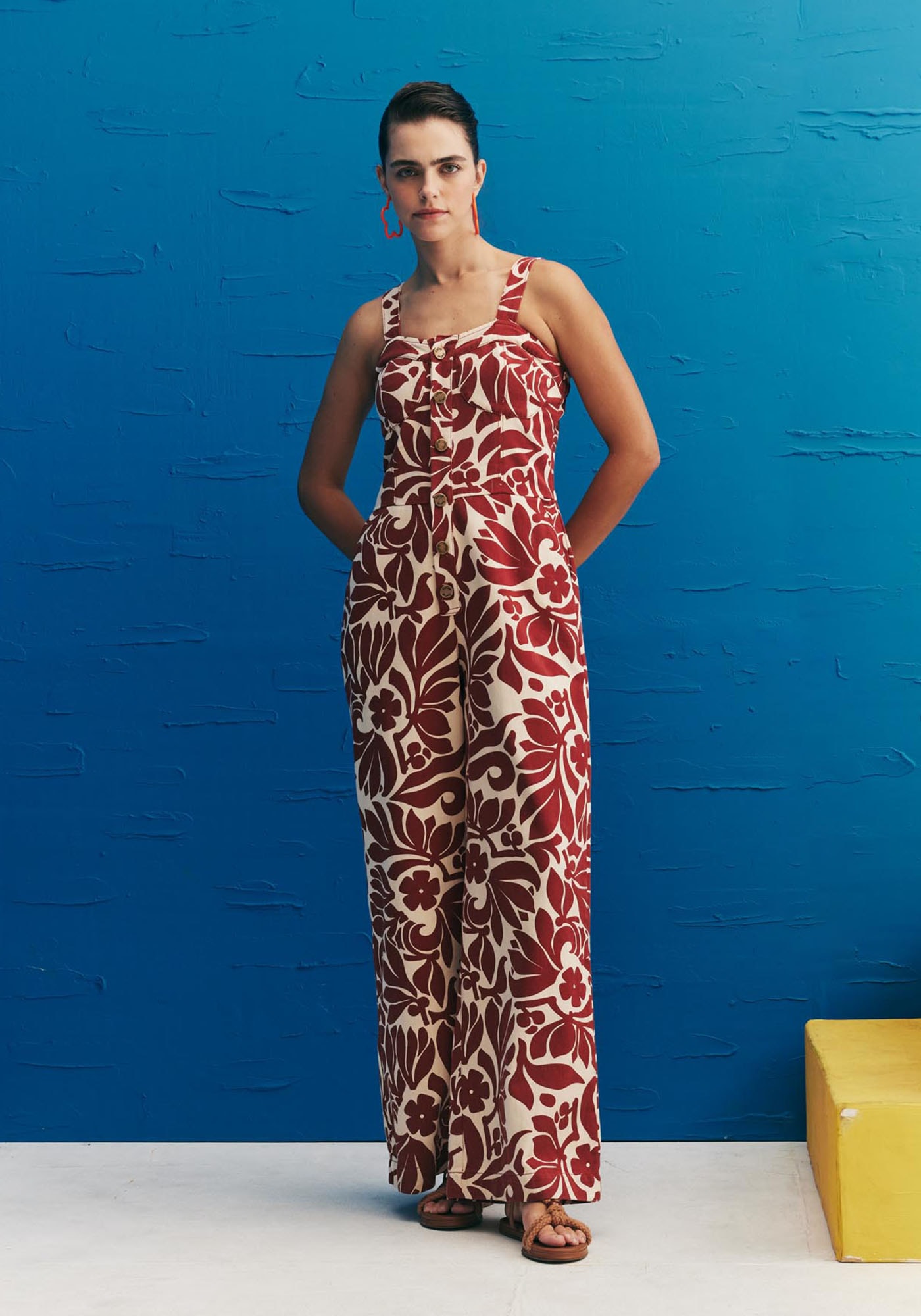 O macacão pantalona Cayo Coral é uma peçaúnica que exala estilo e modernidade. Seus detalhes como alças largas comlastex assim como o lastex também na parte das costas permitem que a peça tenhaum ajuste ideal ao corpo e valorize a silhueta mantendo o conforto. Apresentaabotoamento frontal e bolsos utilitários que adicionam mais praticidade aodesign, enquanto a calça pantalona proporciona fluidez e liberdade demovimento. Confeccionado em sarja de composição 100% algodão, este modelo éperfeito para quem busca estilo e praticidade em uma só peça.