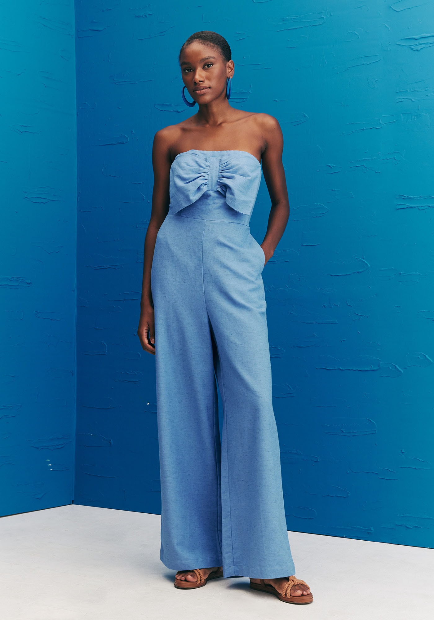Se você busca uma peça moderna e estilosa, o MacacãoTomara Que Caia é a escolha ideal para adicionar ao seu guarda-roupa. Estemodelo se destaca pelo detalhe de laço que torna a peça única e moderna,trazendo um visual sofisticado e feminino. Seu decote é tomara que caia evaloriza o colo. Possui fechamento em zíper e amarração na parte das costas queproporciona segurança e um ajuste confortável ao corpo. Sua calça é deamplitude pantalona e possui bolsos. É confeccionado em tecido de composição 42%algodão 38% viscose 14% modal 6% linho.