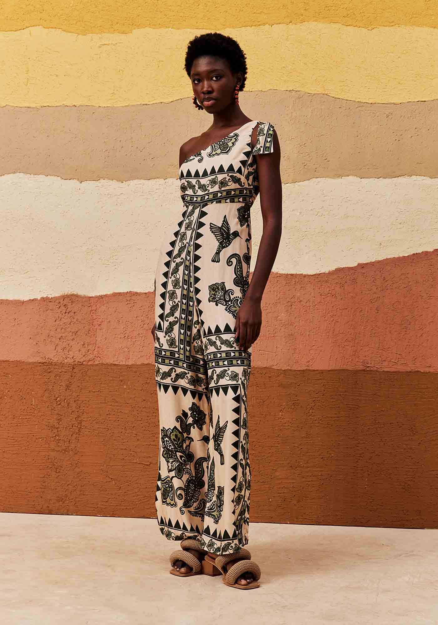 O Macacão Um Ombro Só é a definição de estilo, com um cortemoderno que destaca a elegância e a sofisticação além de valorizar a silhueta.O detalhe de amarração na alça adiciona um toque charmoso. Apresenta fechamentoem zíper invisível na lateral proporcionando um caimento ajustado e acomposição de 97% Viscose e 3% Linho confere ao look uma textura leve e fluída,ideal para quem busca conforto e sofisticação em uma peça única.