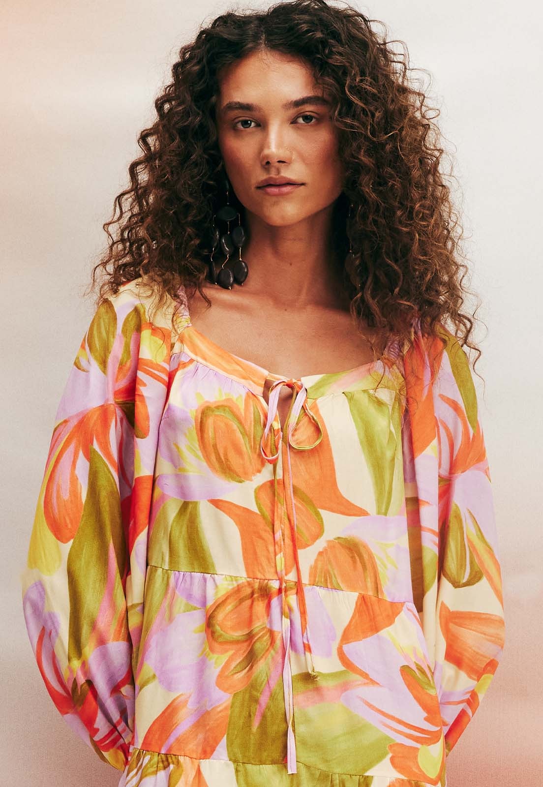 O Macaquinho Detalhe Babados Estampado Fulo CaCay é a escolha perfeita para quem busca leveza e sofisticação em uma única peça. Confeccionado em 100% viscose, oferece toque macio e caimento fluido, garantindo conforto durante todo o dia. O design com babados delicados e estampa artística cria movimento e valoriza a silhueta, enquanto o decote ajustável com amarração adiciona charme e versatilidade. Ideal para quem deseja unir estilo e praticidade sem abrir mão da elegância.
