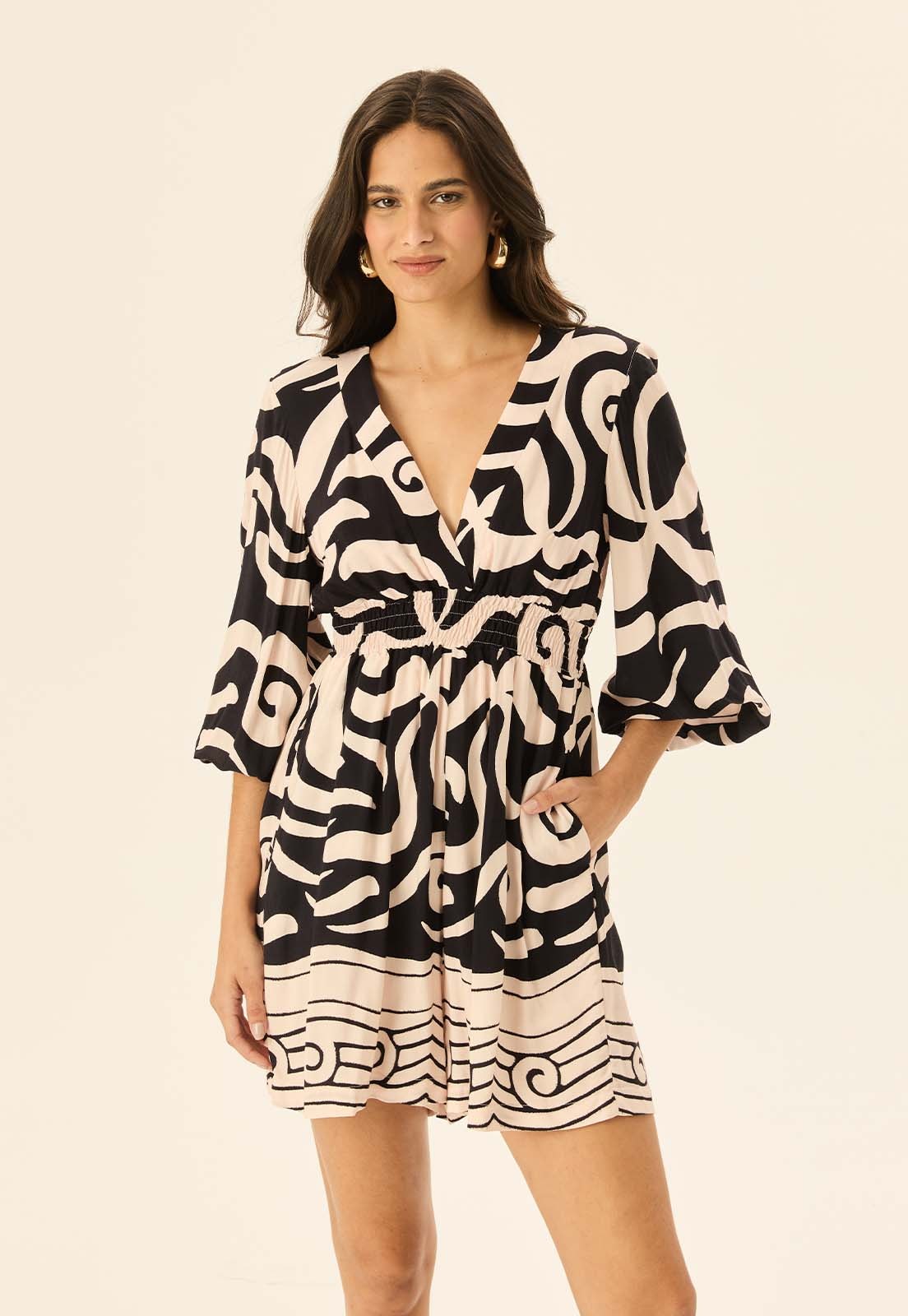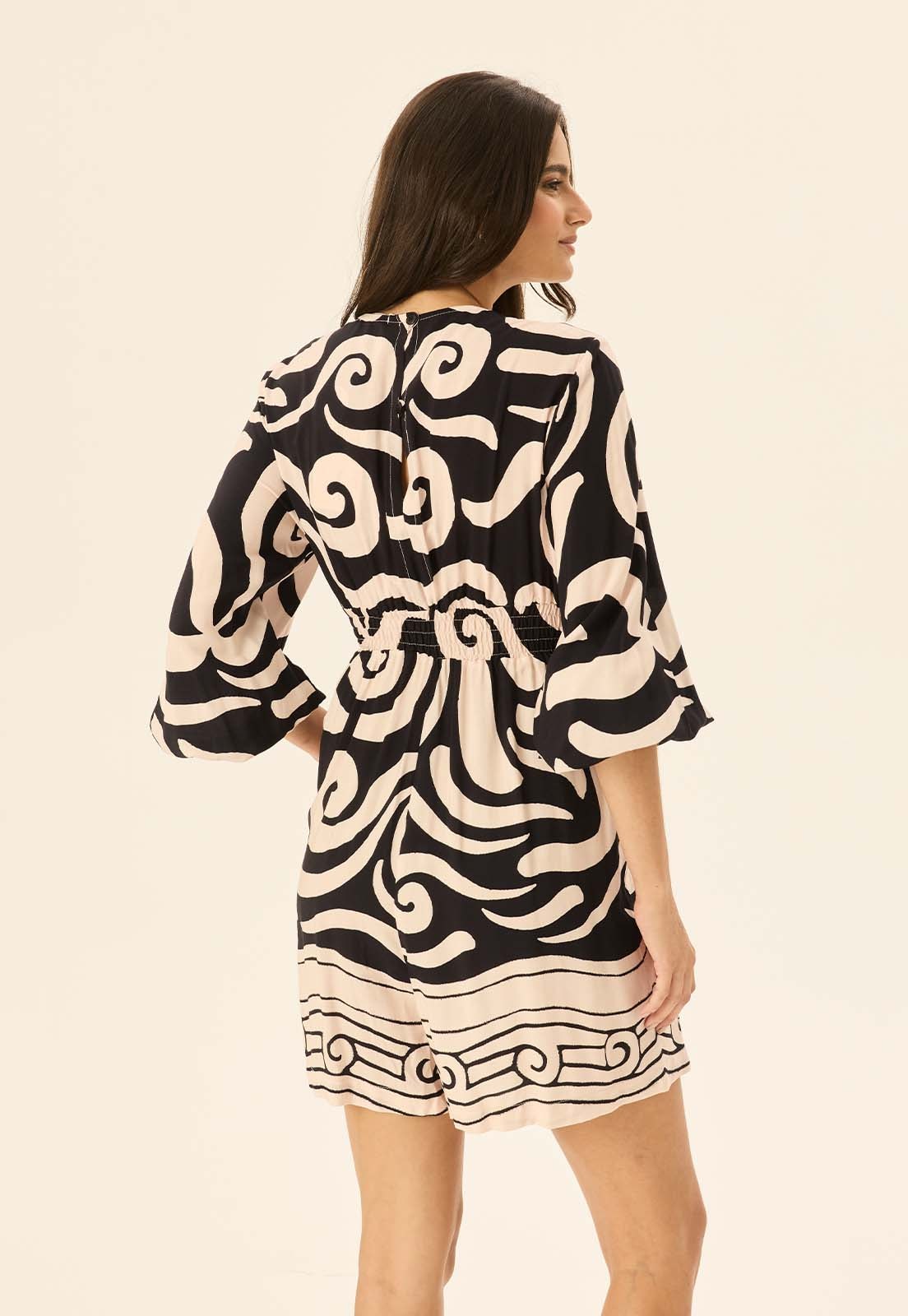Descubra o charme do Macaquinho Mangas Bufantes Estampado Pororoca CaCay, uma peça que une leveza e personalidade. Confeccionado em 100% viscose, oferece toque suave e caimento fluido, garantindo conforto durante todo o dia. As mangas bufantes adicionam sofisticação, enquanto a estampa com movimento orgânico cria um visual marcante e atemporal. Ideal para quem busca praticidade sem abrir mão do estilo.