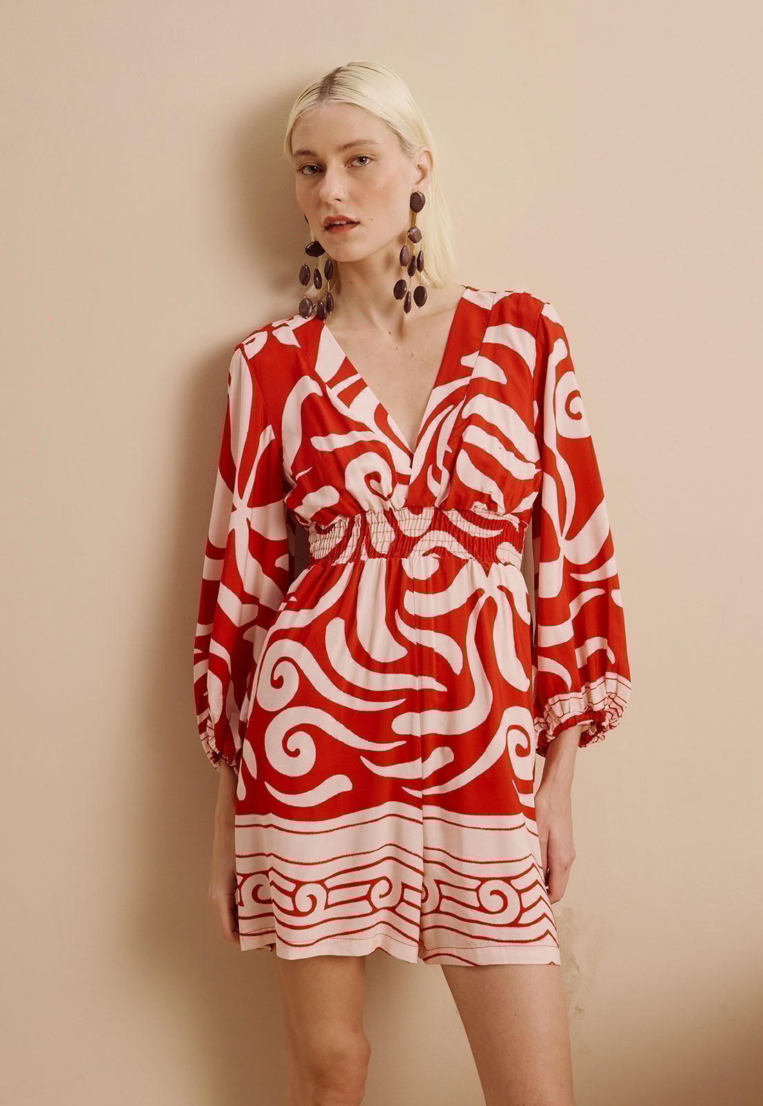 Descubra o charme do Macaquinho Mangas Bufantes Estampado Pororoca CaCay, uma peça que une leveza e personalidade. Confeccionado em 100% viscose, oferece toque suave e caimento fluido, garantindo conforto durante todo o dia. As mangas bufantes adicionam sofisticação, enquanto a estampa com movimento orgânico cria um visual marcante e atemporal. Ideal para quem busca praticidade sem abrir mão do estilo.