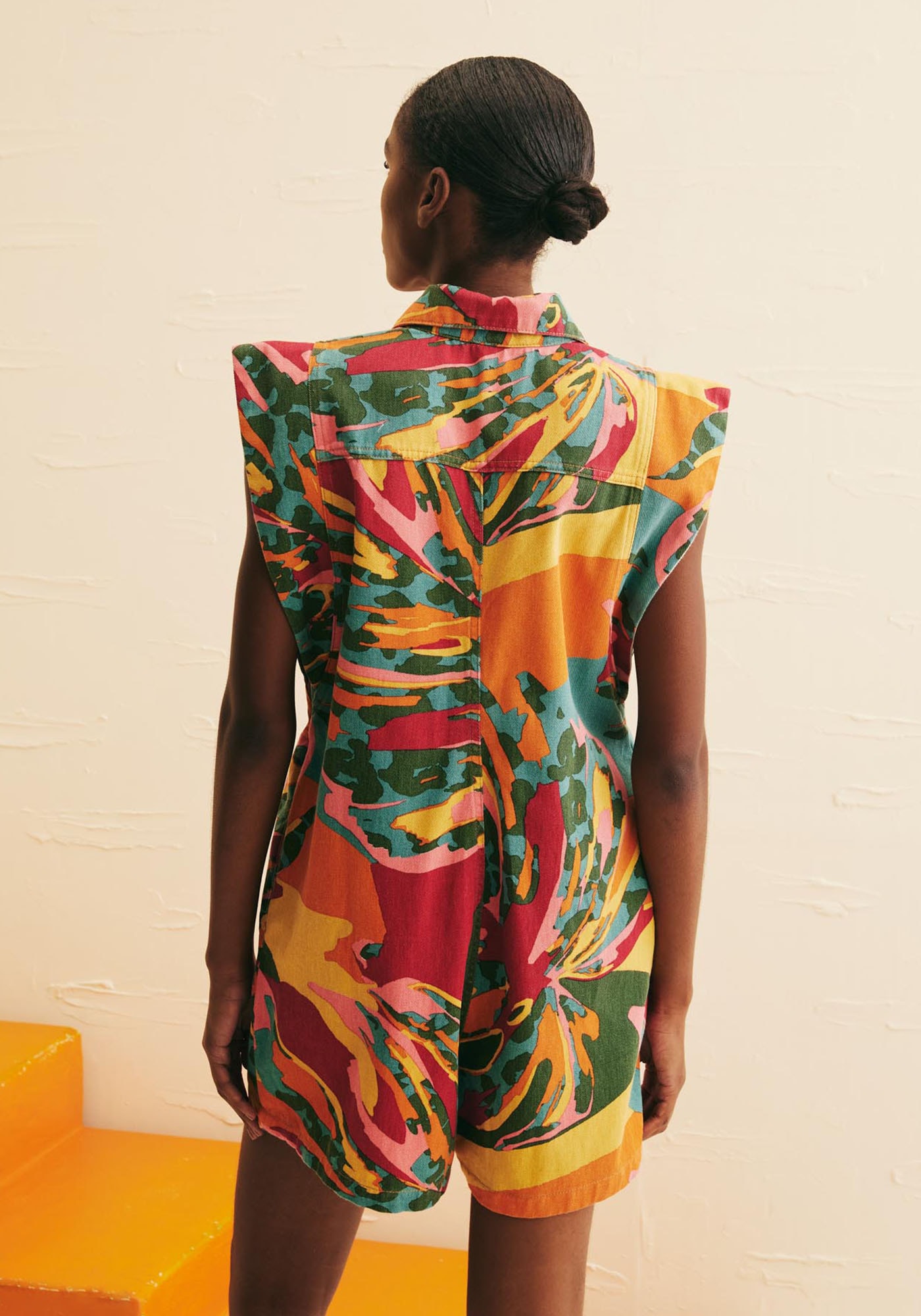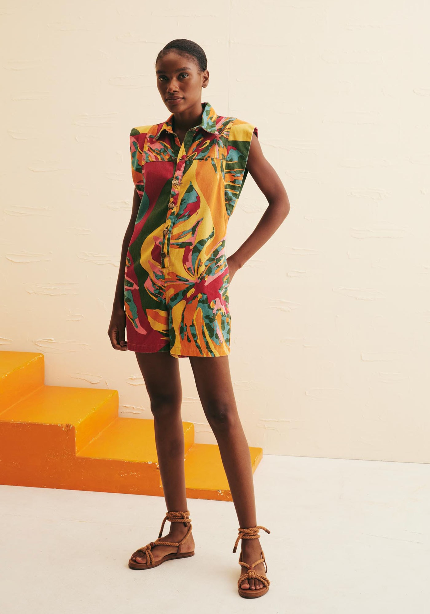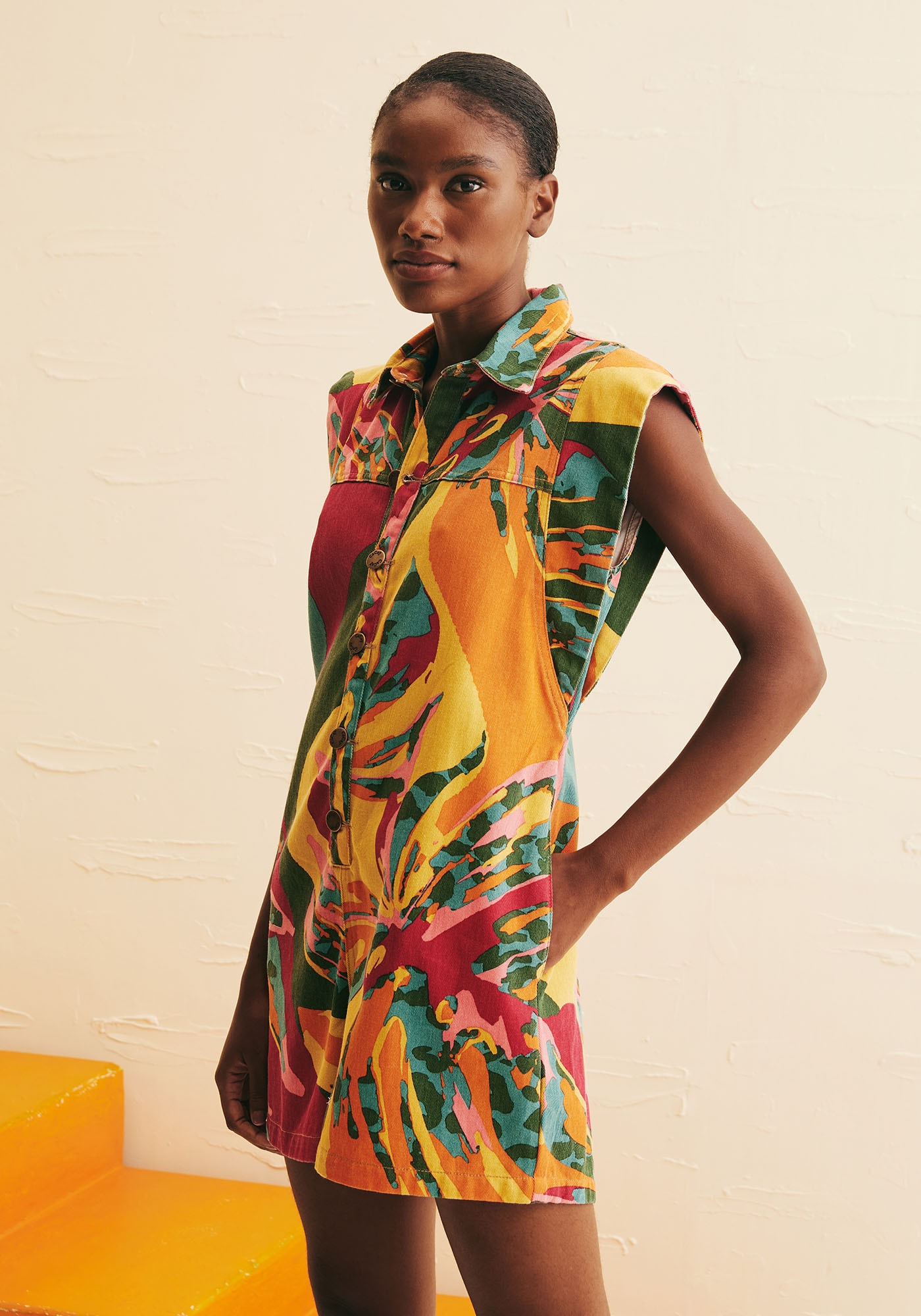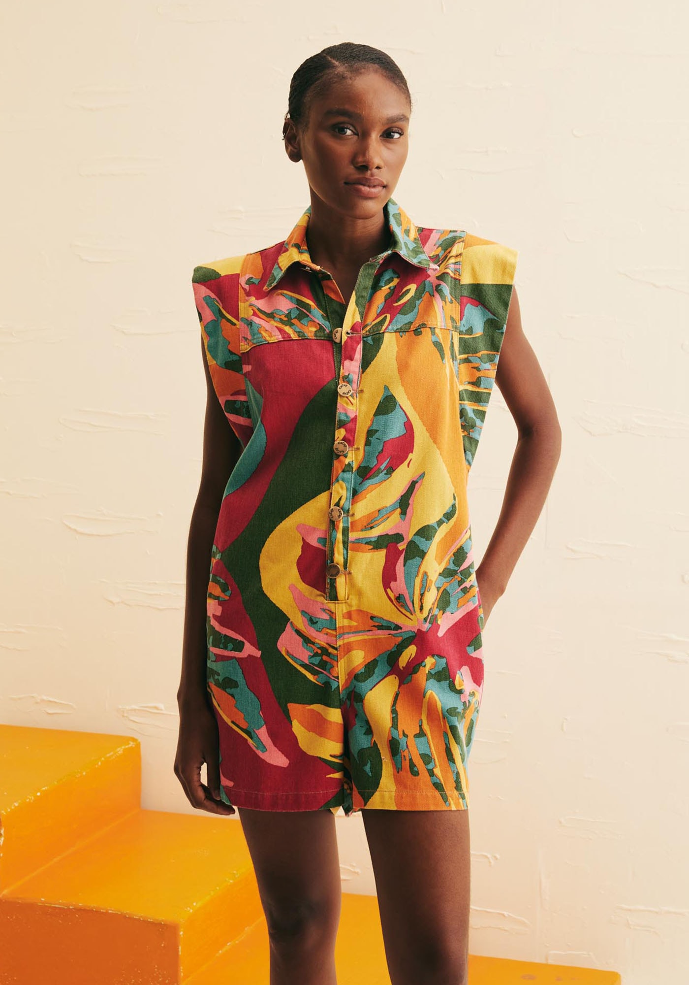 Prático e moderno, o Macaquinho Sarja EstampadoCostela Mexicana é uma peça indispensável para quem deseja um visual estiloso econfortável. Confeccionado em sarja de composição 100% algodão, ele apresentaabotoamento frontal e gola clássica, que juntamente às mangas curtas com volumeadicionam um toque de sofisticação. Sua estampa Costela Mexicana é única, tropicale a cara do verão adicionando ainda mais charme à peça. Perfeito para os diasmais quentes, este modelo oferece muita praticidade sem abrir mão do estilo
