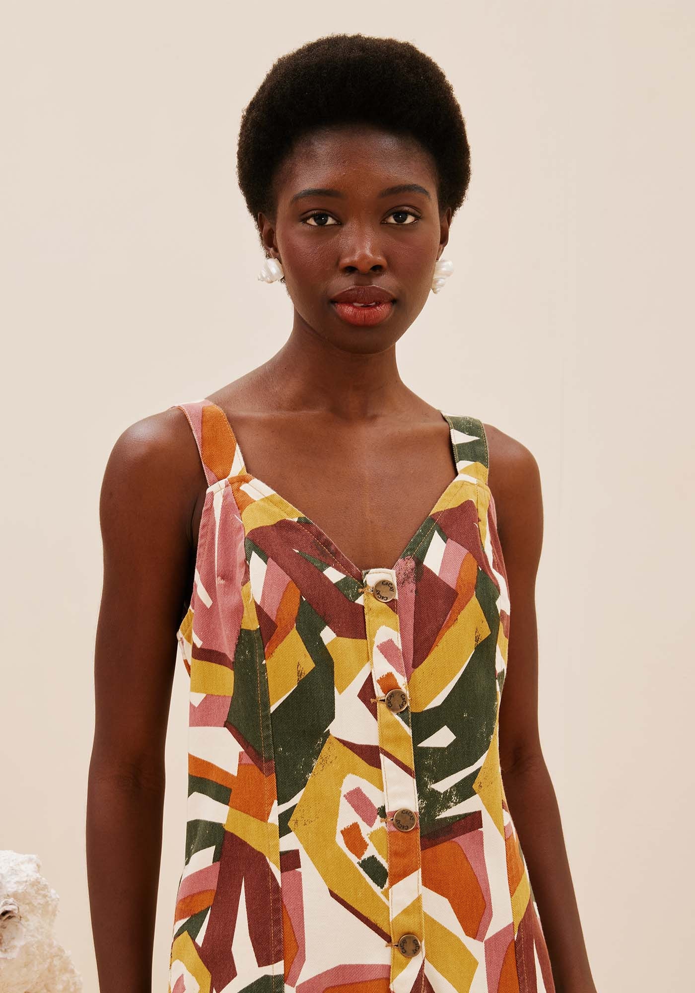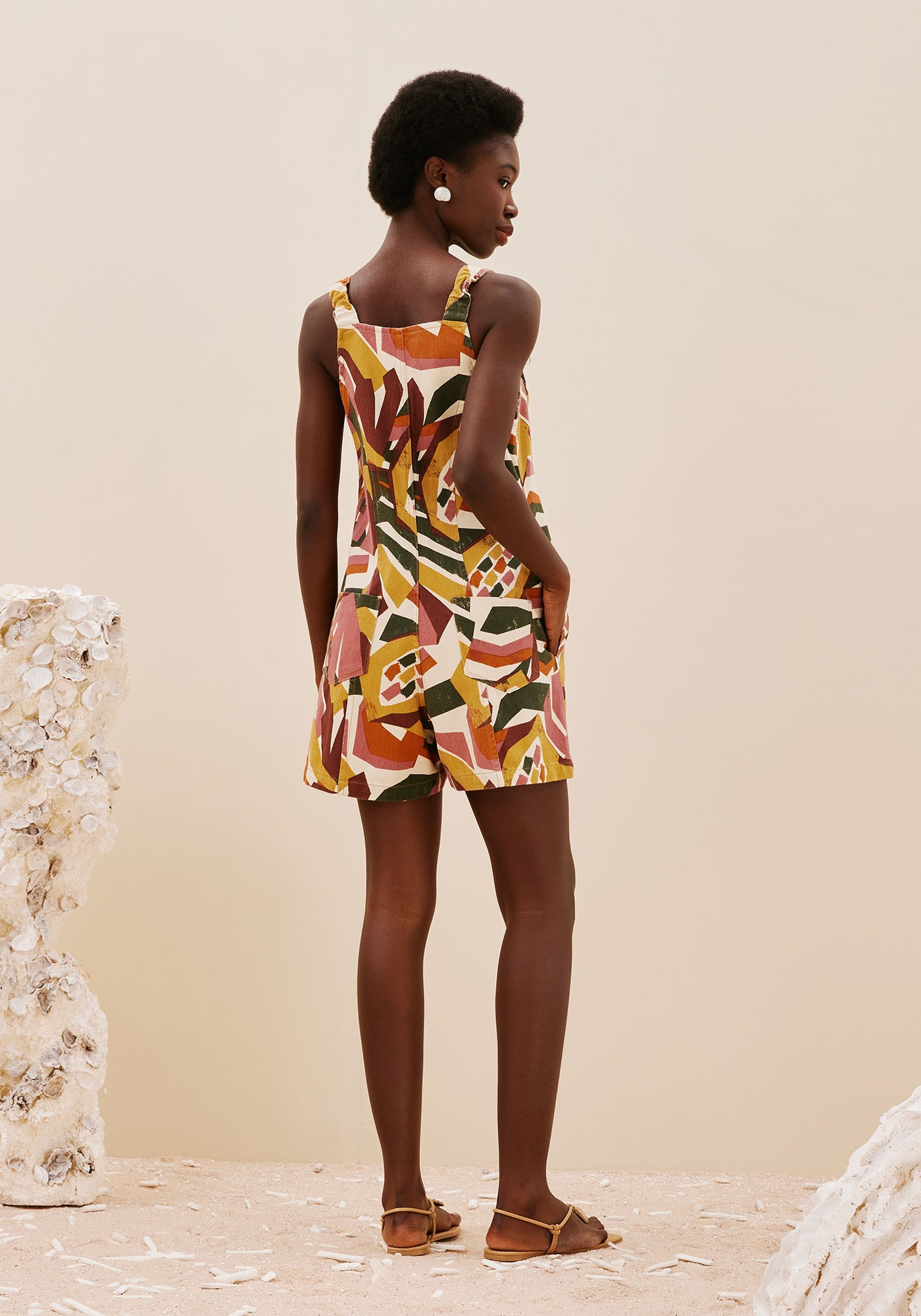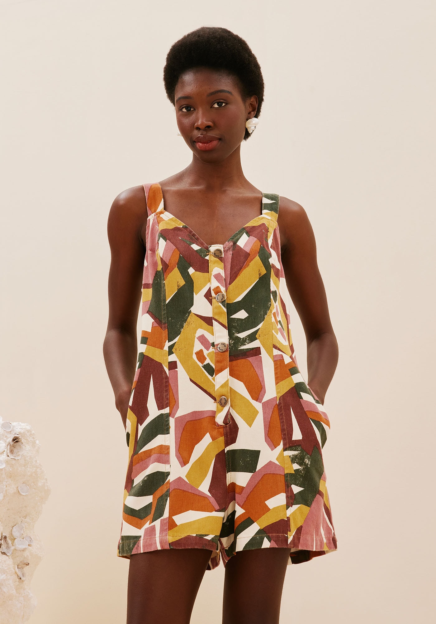 O macaquinhoestampado é uma graça. Charmoso e fresco, o modelo é confeccionado em sarja 100%algodão e possui um shape larguinho e confortável. Contém abotoamento frontalcom bolsos que deixam o macaquinho muito mais prático.